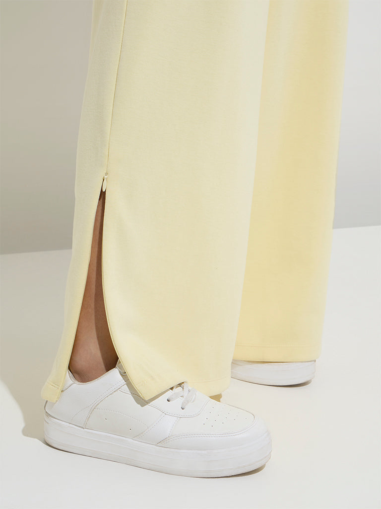 LOV Yellow Cotton-Blend High-Rise Track Pants
