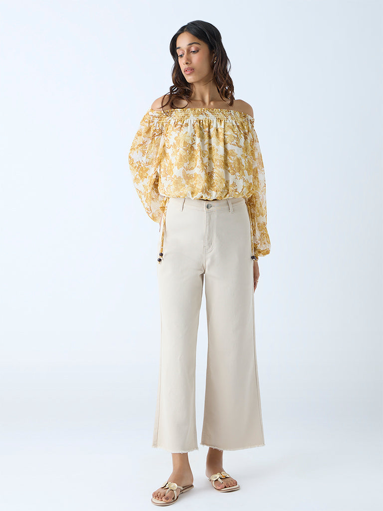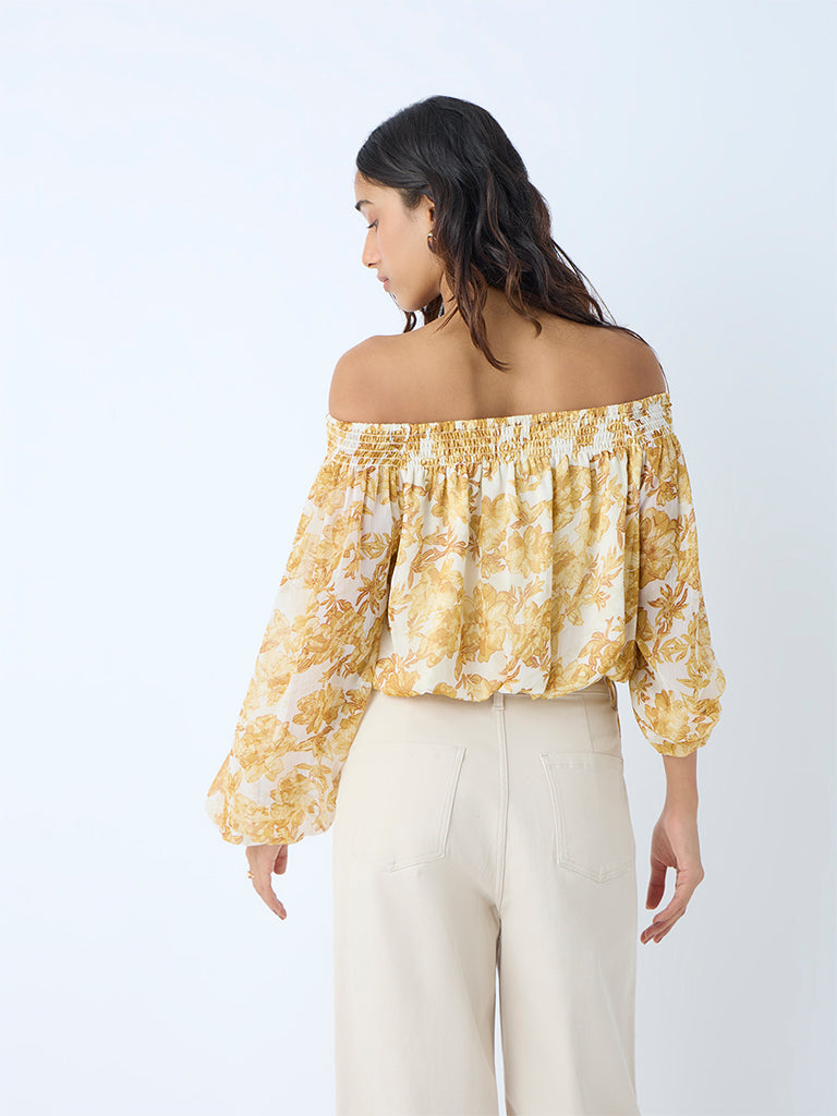 LOV Yellow Floral Detailed Off-Shoulder Top