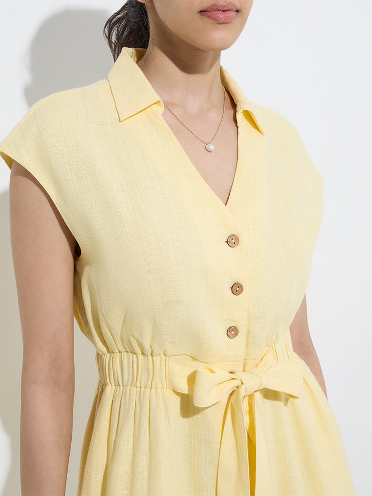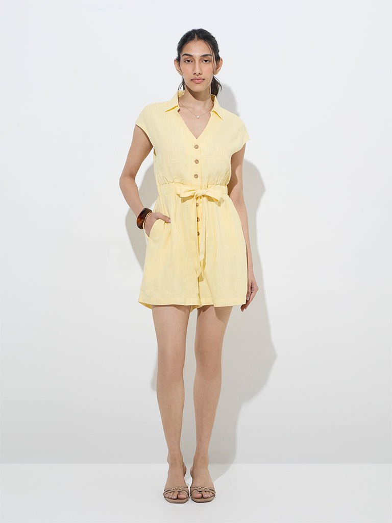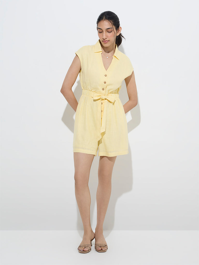 LOV Yellow Linen-Blend Playsuit