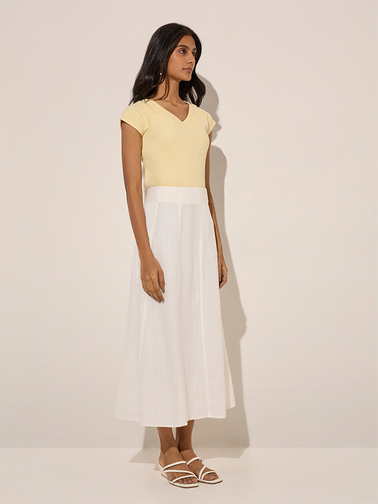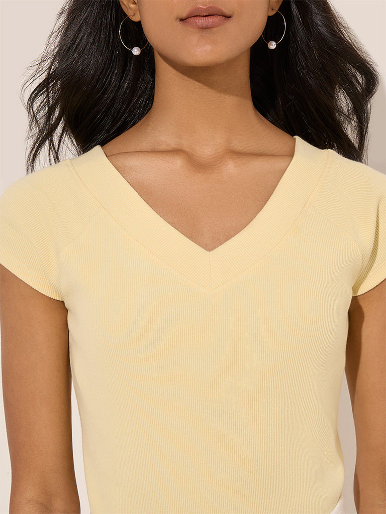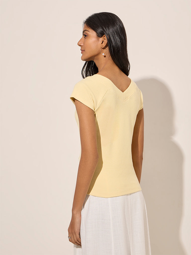 LOV Yellow Ribbed Textured Cotton-Blend Top