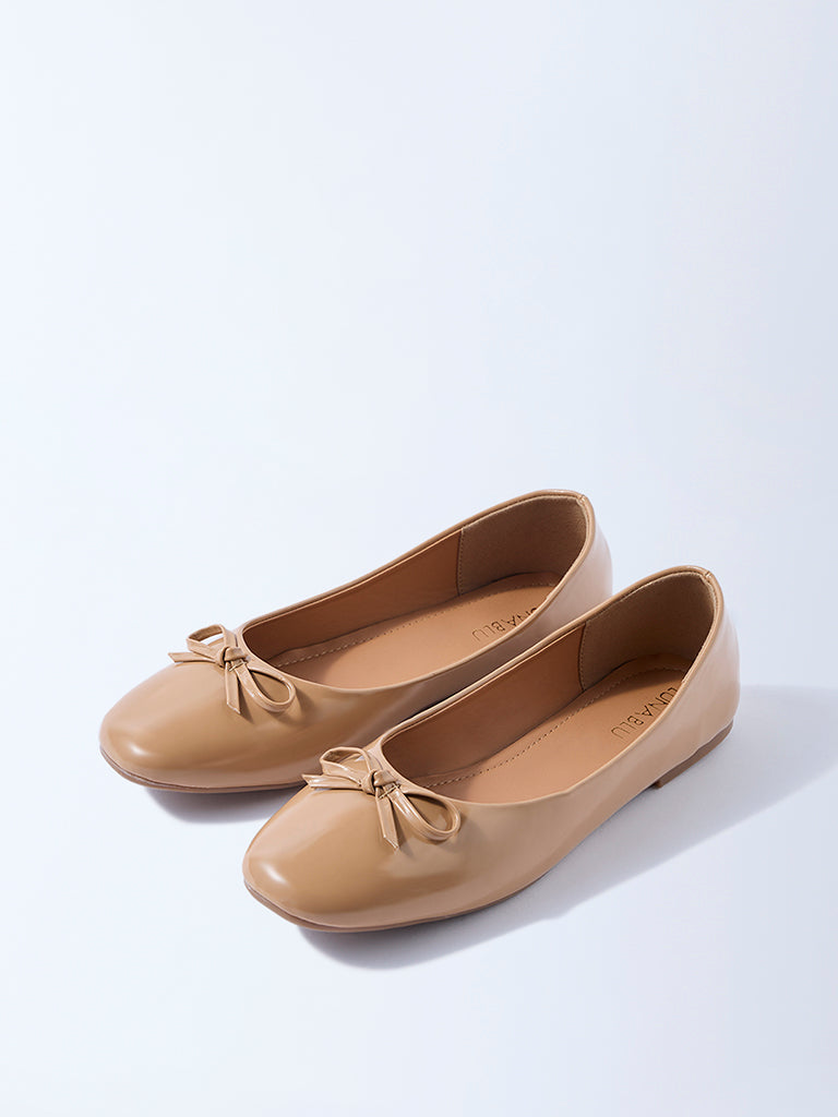 Add a glossy finish to your off-duty looks with these beige ballerina from Luna Blu. The smooth. high-shine upper brings a chic polish. while the delicate bow detail at the toe adds a soft. playful touch. Designed with a gently cushioned footbed and a low. flexible sole. they’re made for long days on the go.