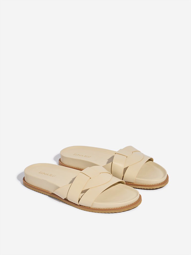 LUNA BLU Beige Criss-Cross Design Comfort Slides