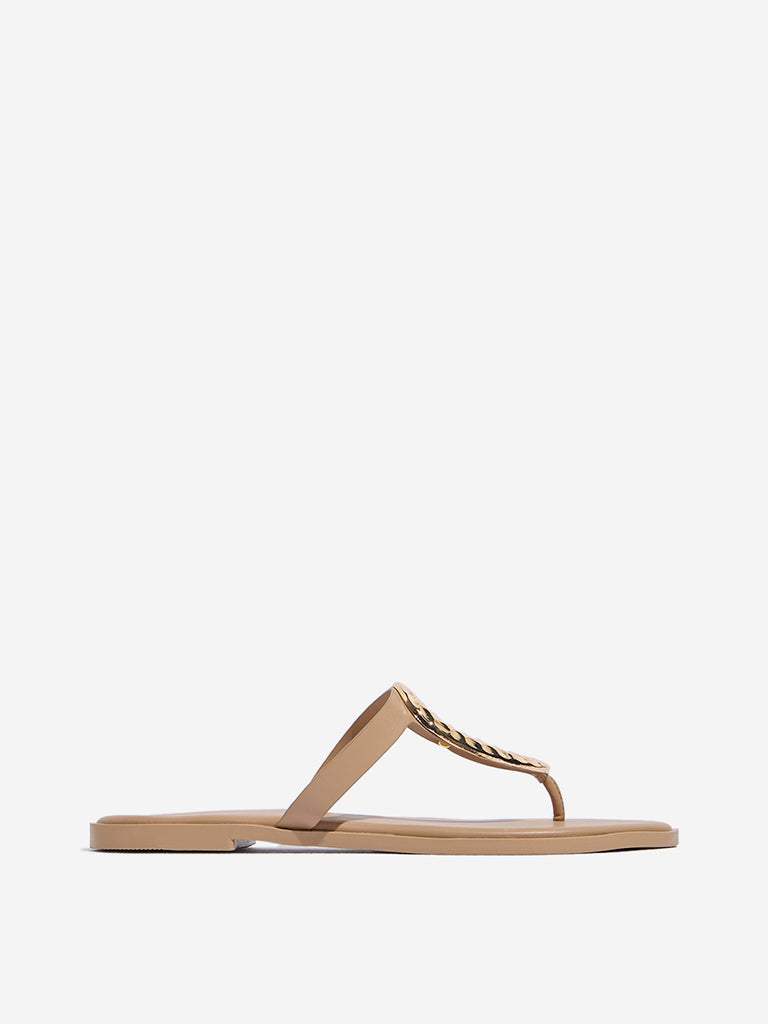 LUNA BLU Beige Hardware-Detailed Thong-Strap Sandals
