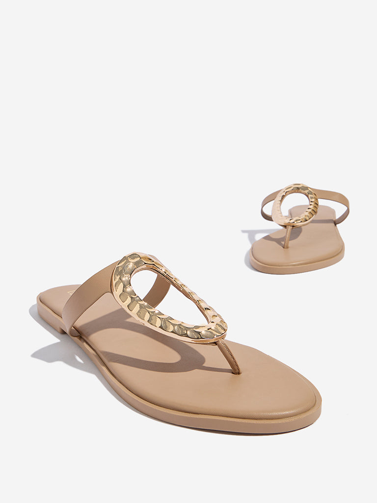 Step out in style with these chic beige sandals by Luna Blu. Highlighted by gold-toned textured hardware on the thong strap. they bring a hint of glamour to your look. The soft. cushioned footbed ensures comfort. while the durable outsole promises lasting wear. Perfectly versatile. these sandals pair effortlessly with shorts. jeans. or flowing dresses for an elevated ensemble.