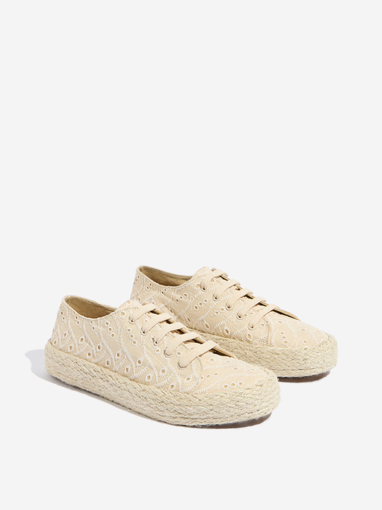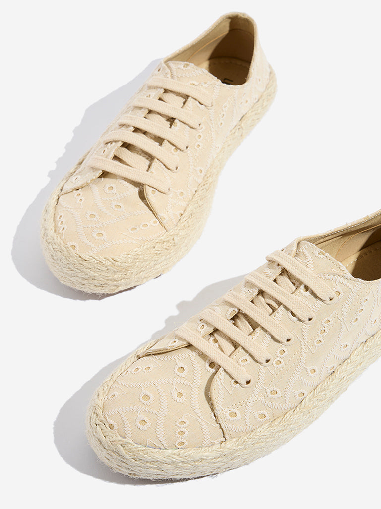 LUNA BLU Beige Schiffli Detailed Lace-Up Sneakers