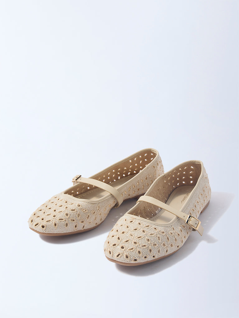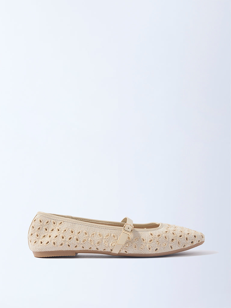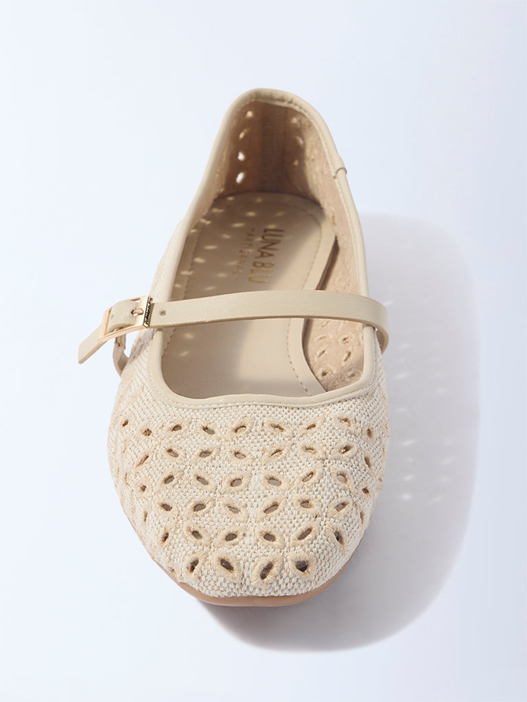 LUNA BLU Beige Schiffli Detailed Mary Jane Shoes