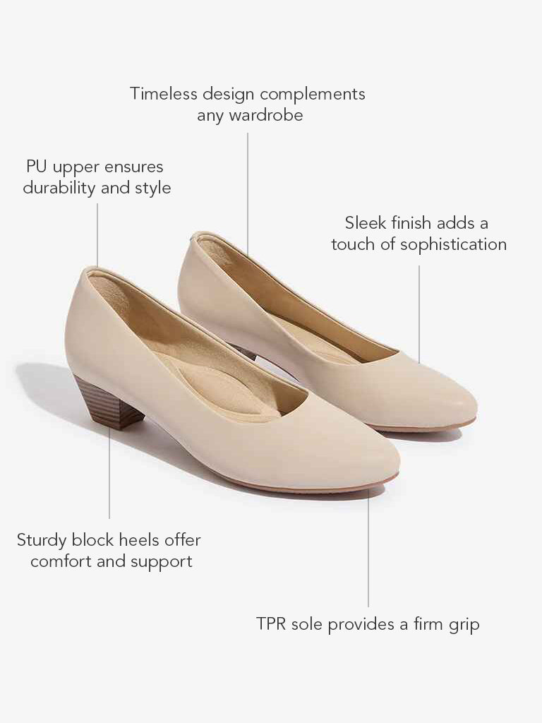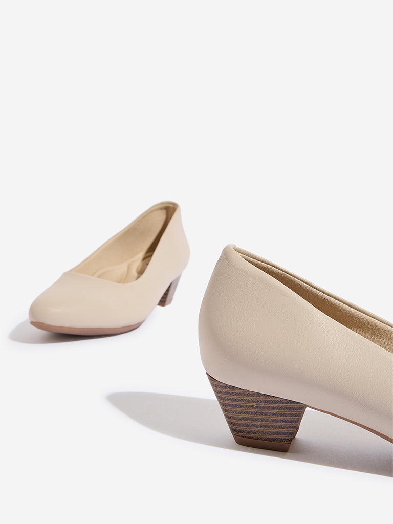 Exude elegance with these beige solid pump shoes from Luna Blu. Their versatile shade complements a wide range of outfits. from professional attire to chic casual wear. Featuring a comfortable heel and a classic silhouette. these pumps effortlessly blend style with practicality. making them a staple for your wardrobe.