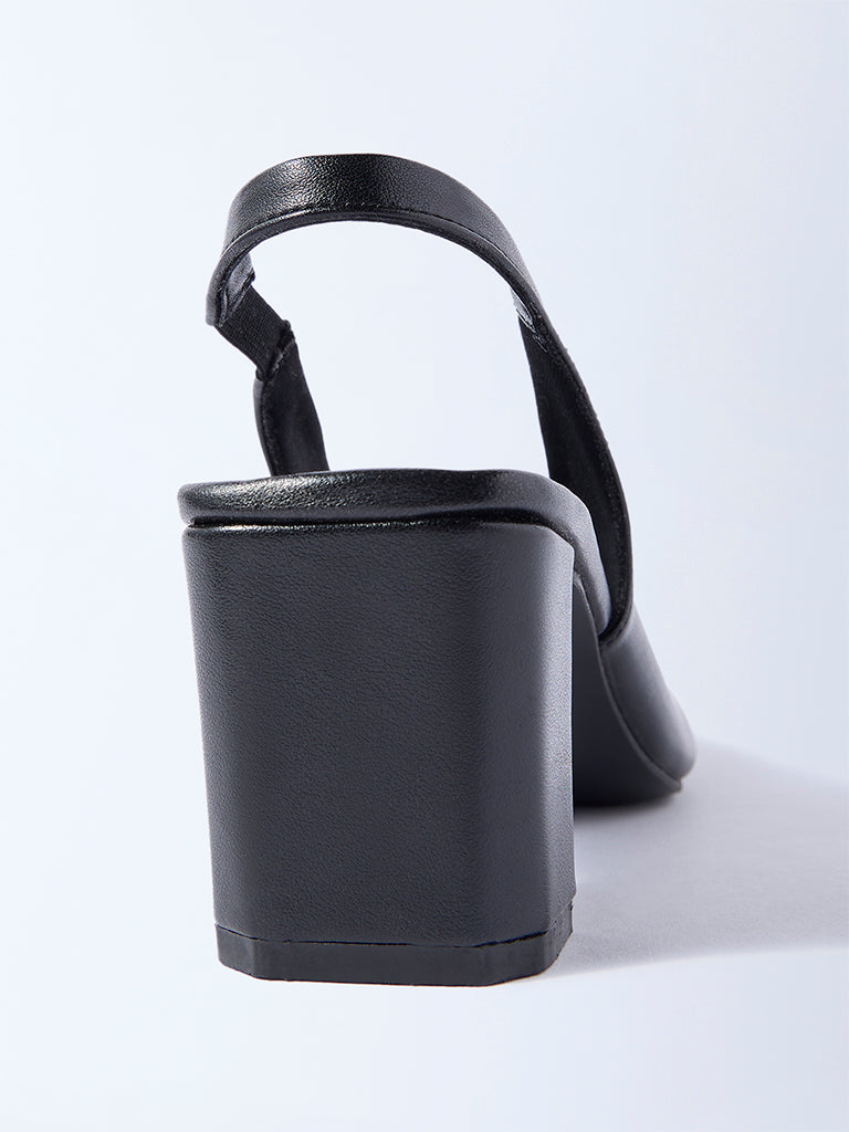 Amp up your style with these black slingback mules from Luna Blu. Designed with a sleek square toe for a polished silhouette. the pair is secured with a slingback strap and set on a cushioned insole for comfort. A sturdy block heel provides reliable support. making them an effortless pick for everyday elegance.