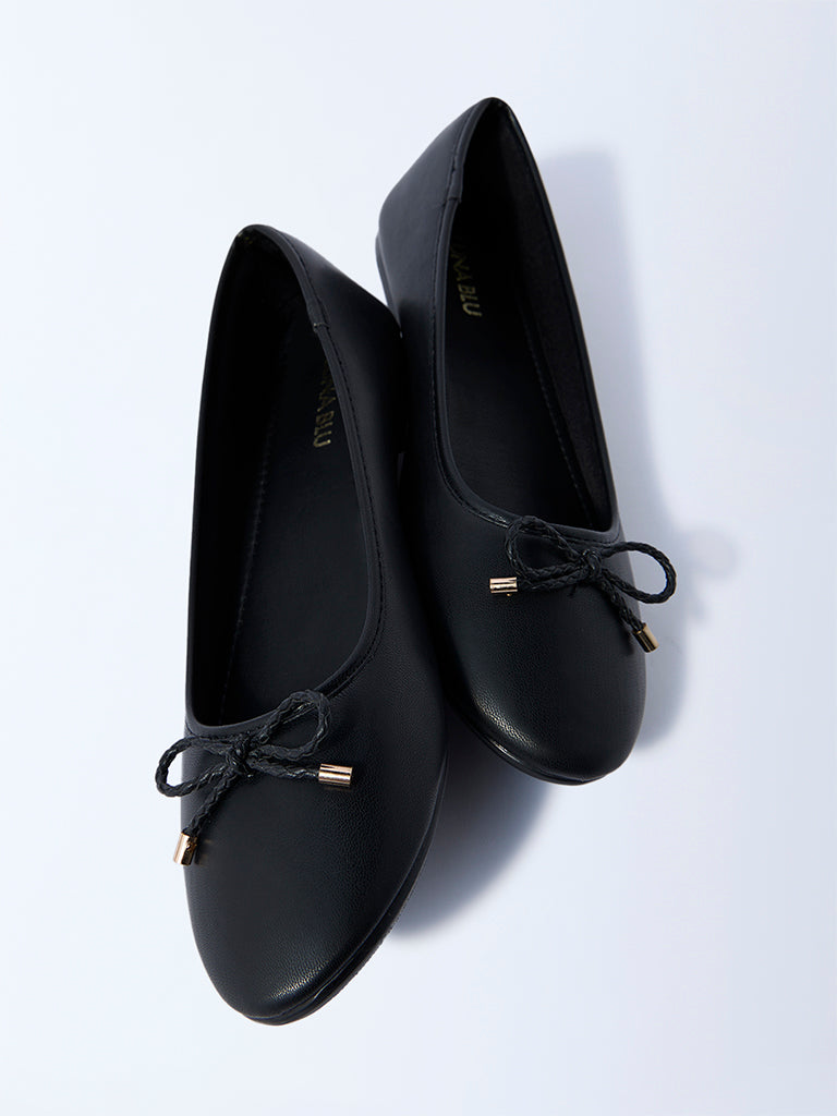Bring a chic twist to your ensemble with these black ballerinas from Luna Blu. Designed in a timeless silhouette. they feature a delicate bow detail on the vamp for a hint of charm. The cushioned footbed ensures all-day comfort. while the textured outsole delivers dependable grip.