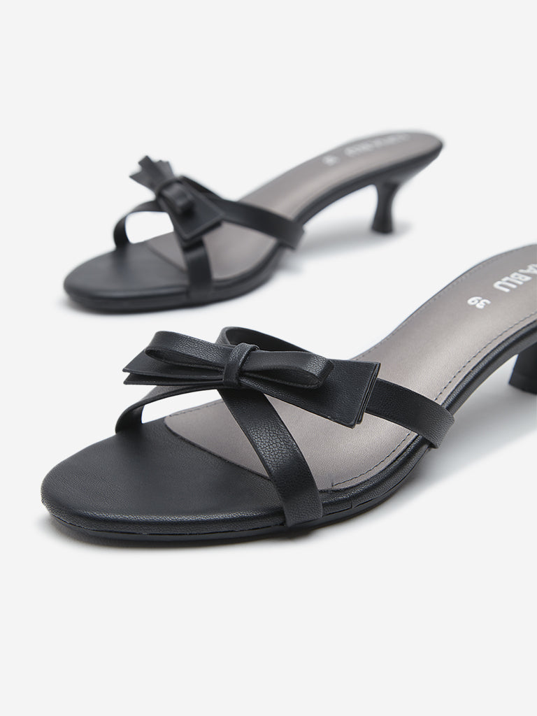 LUNA BLU Black Bow-Detailed Kitten Heel Sandals