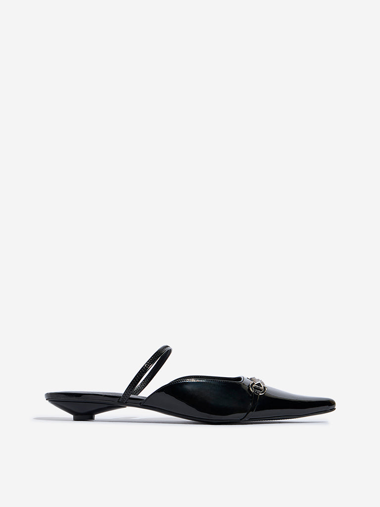 LUNA BLU Black Chain-Detailed Mule Shoes