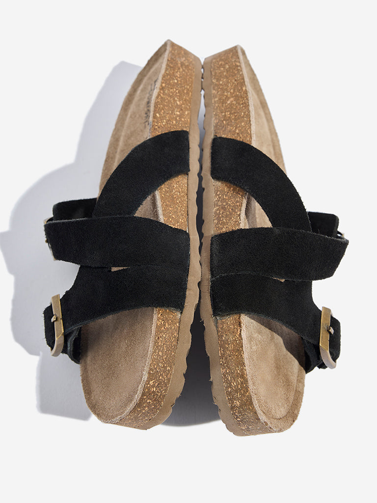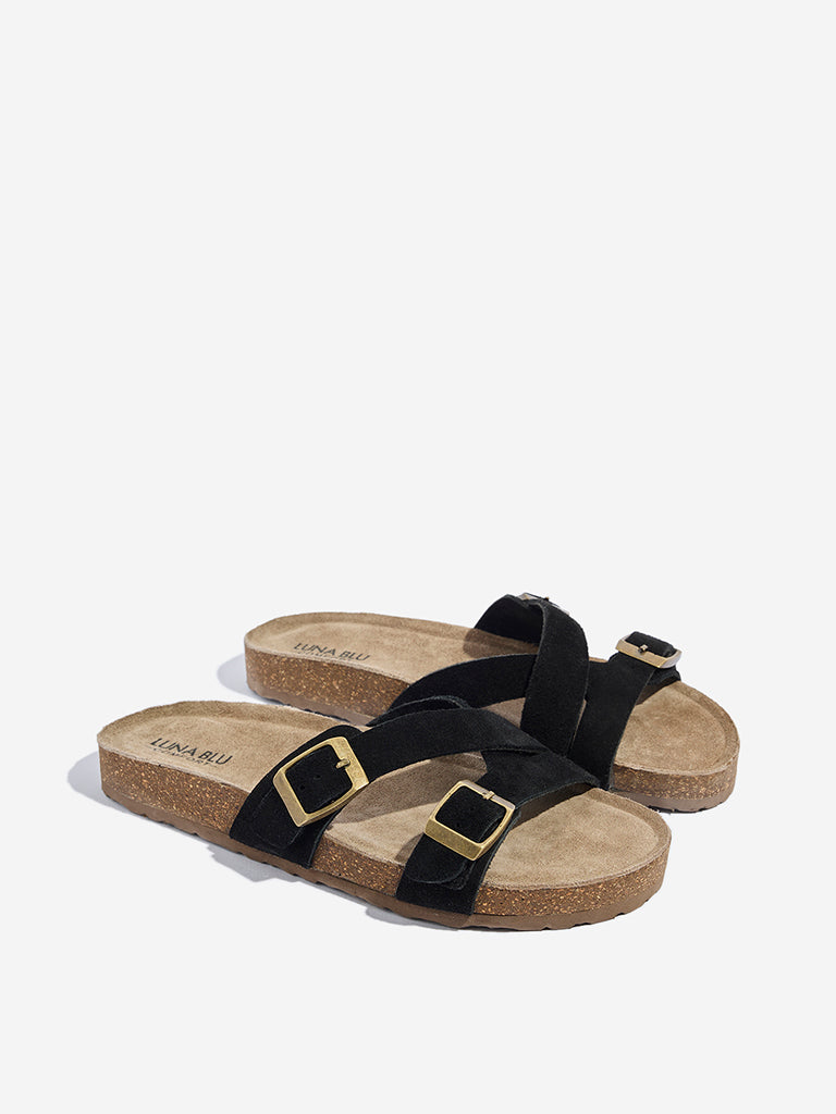 LUNA BLU Black Criss-Cross Detailed Slip-On Comfort Sandals