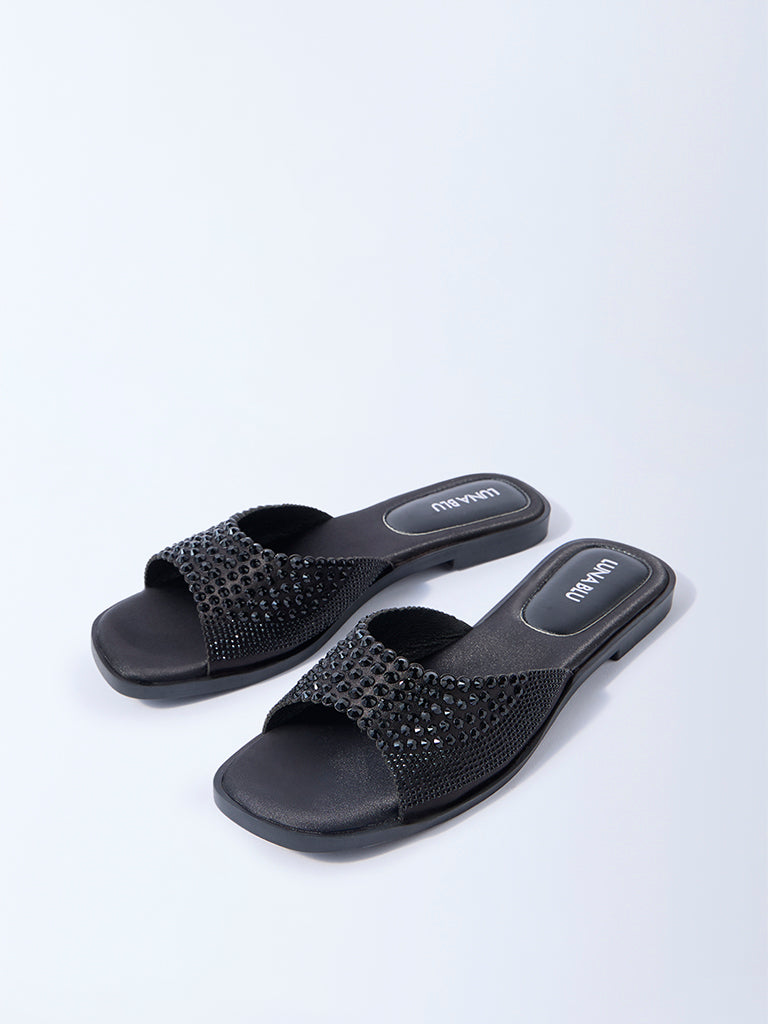 Be the first to review “LUNA BLU Black Embellished Slides” Cancel reply
