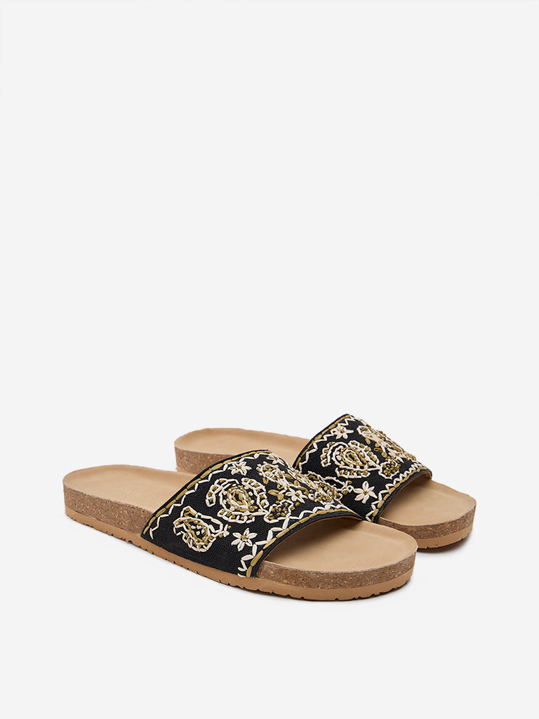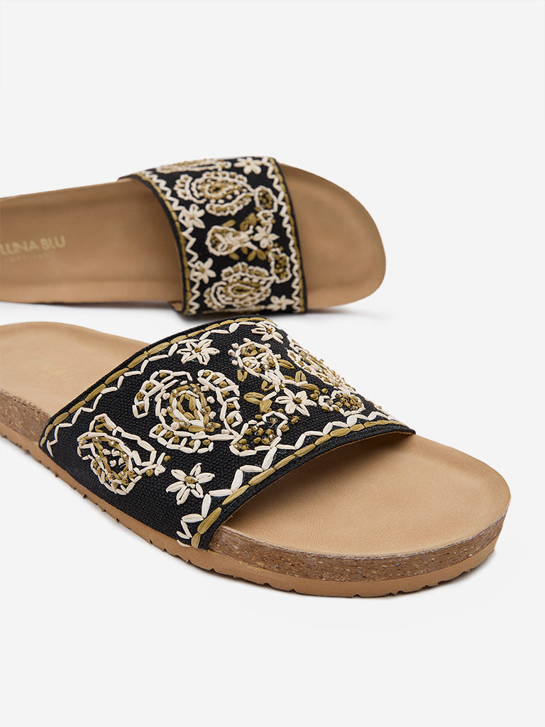Be the first to review “LUNA BLU Black Embroidered Slip-On Sandals” Cancel reply