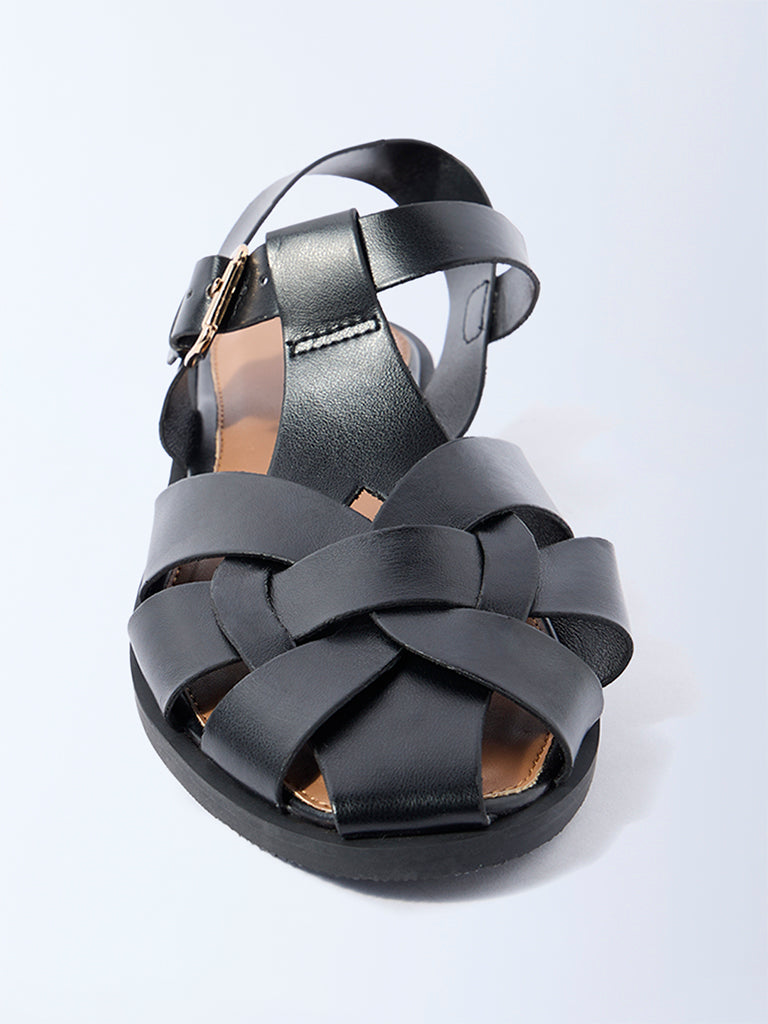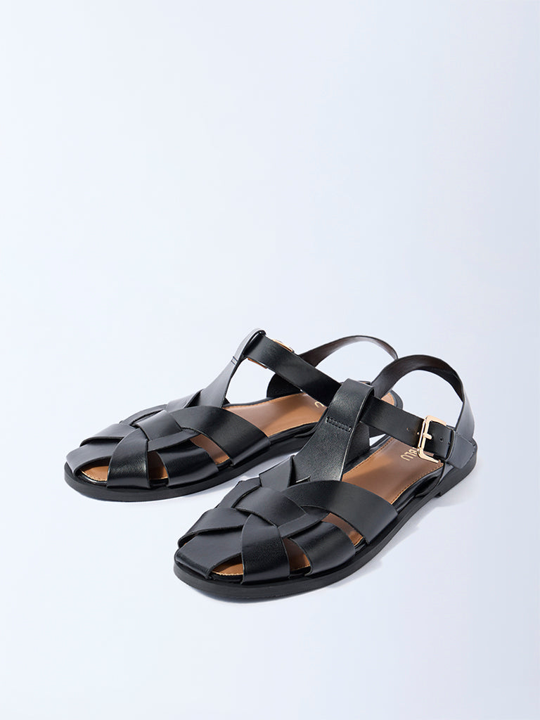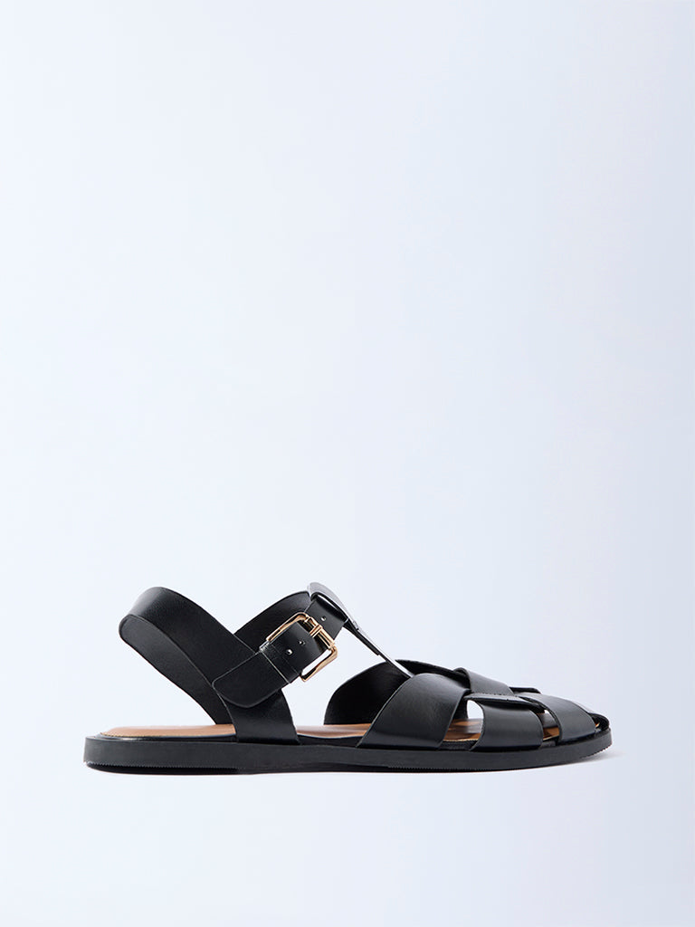These black Fisherman sandals from Luna Blu are a chic update to a classic silhouette. Wide criss-cross straps offer a secure fit. complemented by a slingback strap and adjustable buckle for stability. Resting on a cushioned footbed. they carry you through errands or casual outings with ease and understated sophistication.