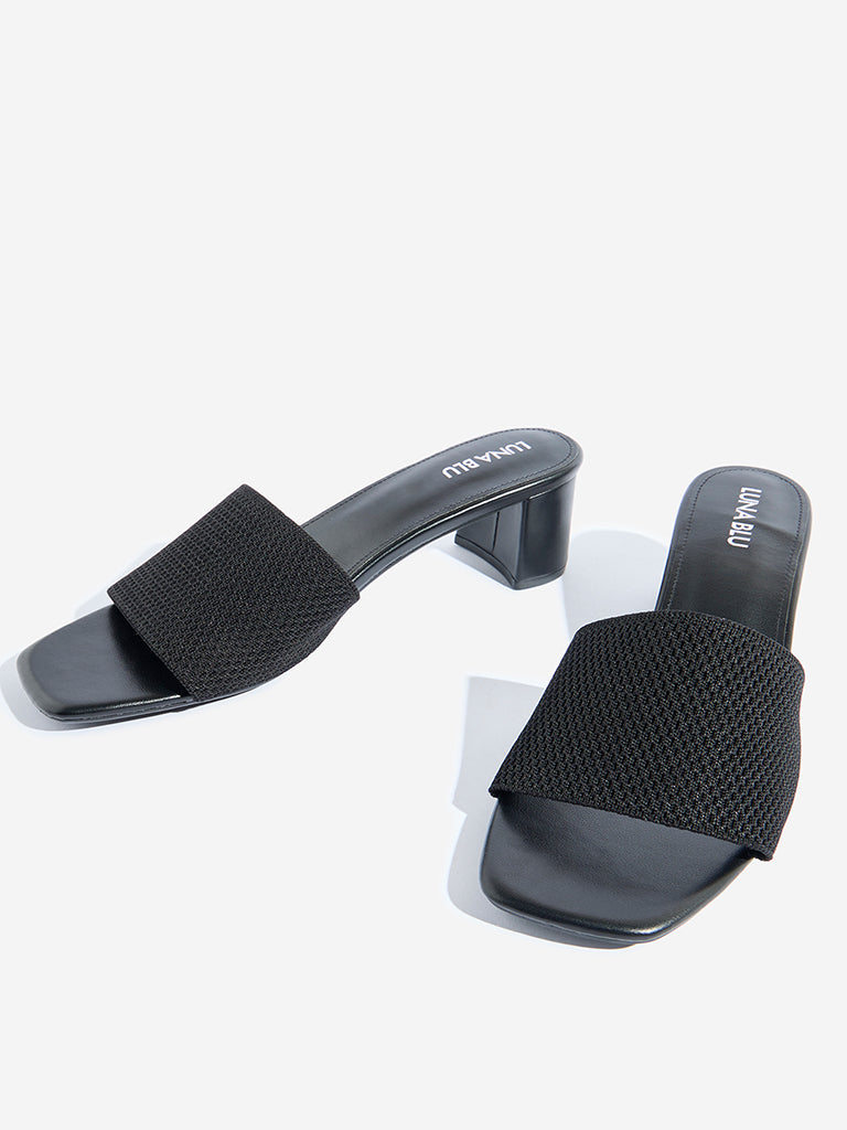LUNA BLU Black Knit-Textured Block Heel Sandals