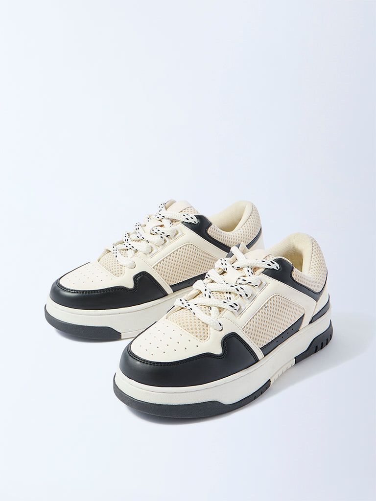 LUNA BLU Black Mesh Detailed Lace-Up Sneakers