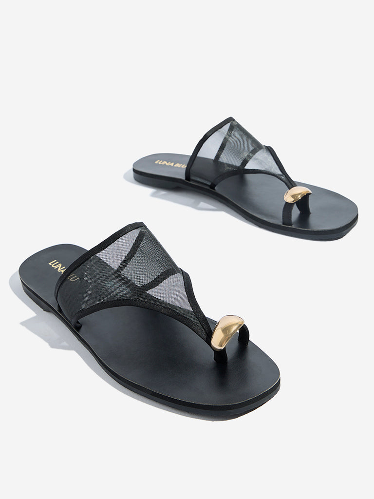 LUNA BLU Black Mesh Detailed Toe-Ring Sandals