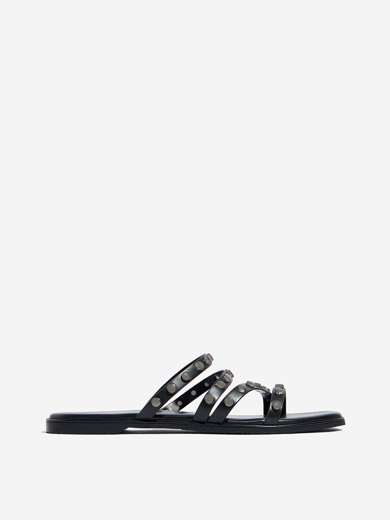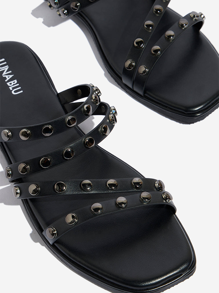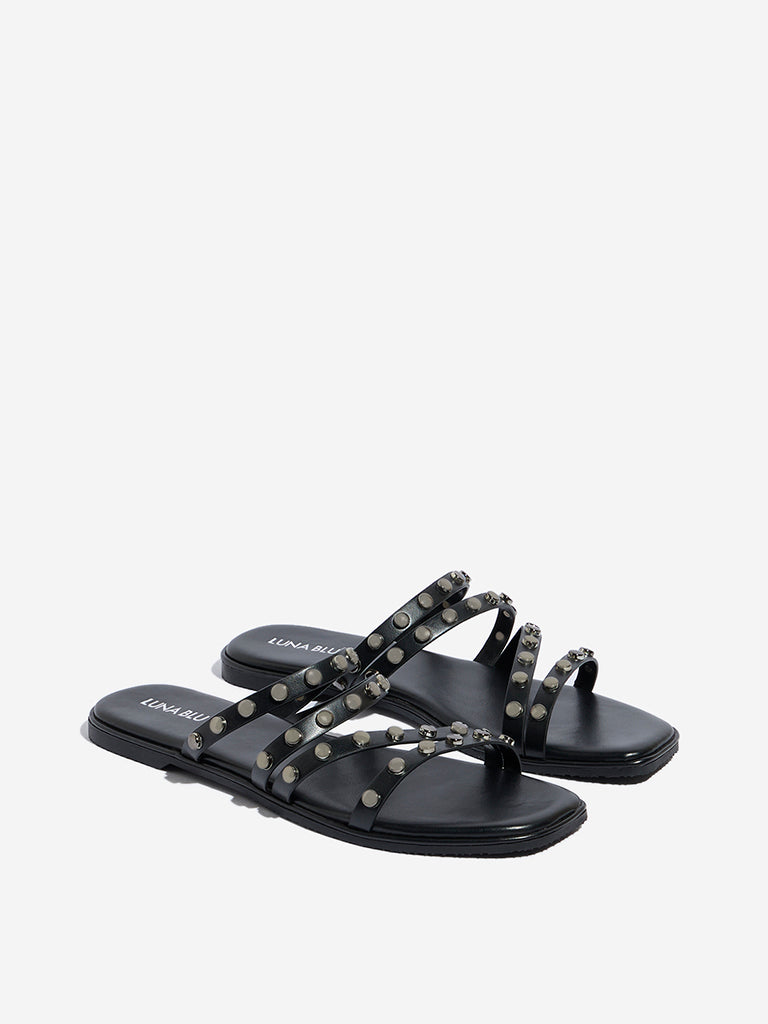 LUNA BLU Black Multi-Strap Slides
