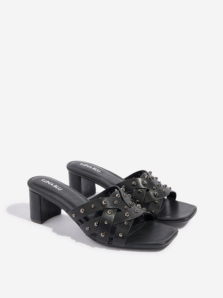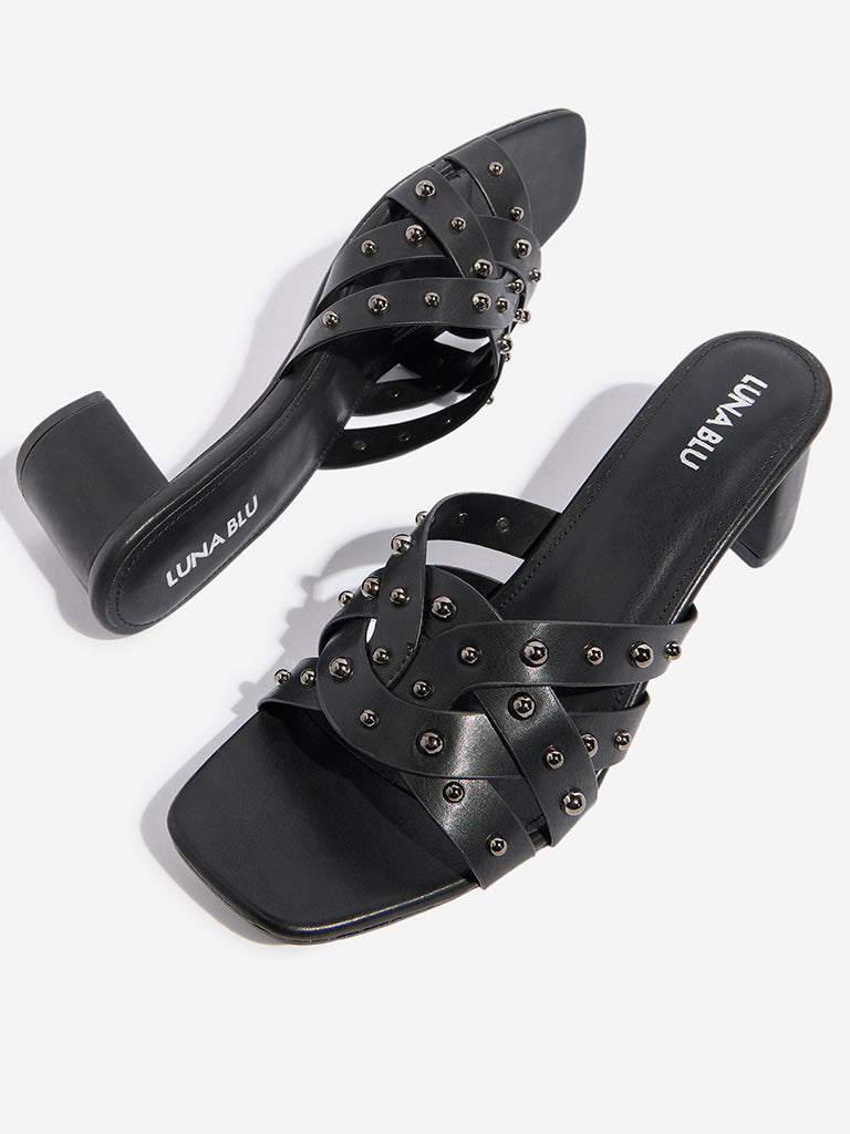 Be the first to review “LUNA BLU Black Multi Strap Studded Heel Sandals” Cancel reply