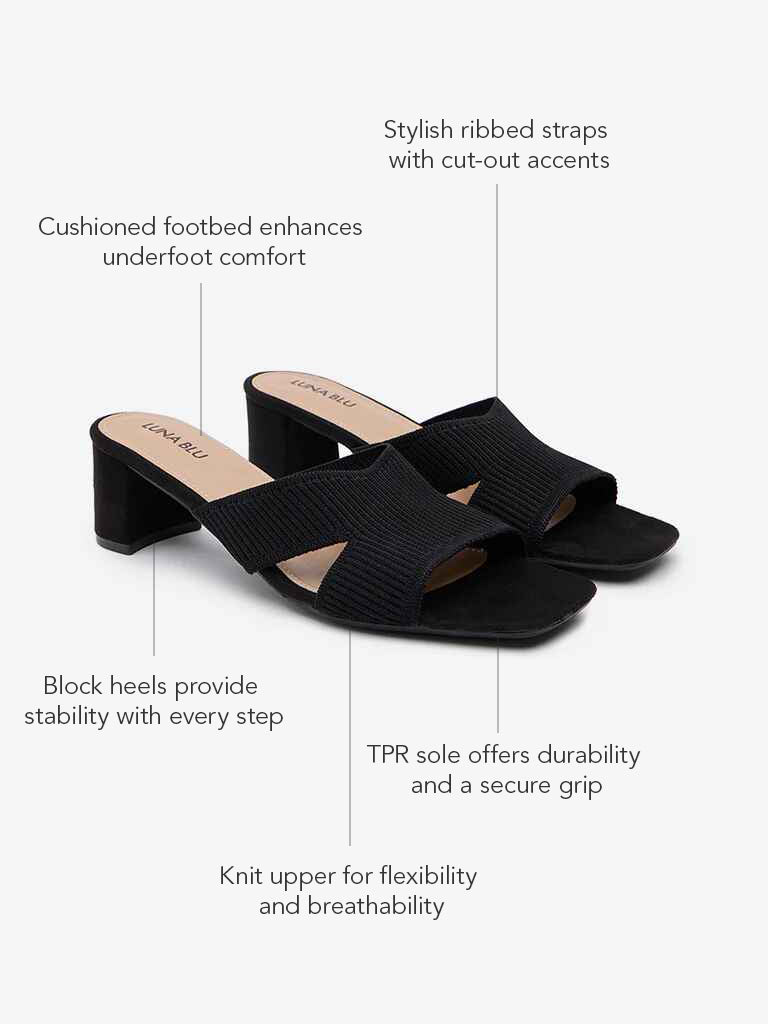 Be the first to review “LUNA BLU Black Ribbed-Textured Block Heel Sandals” Cancel reply