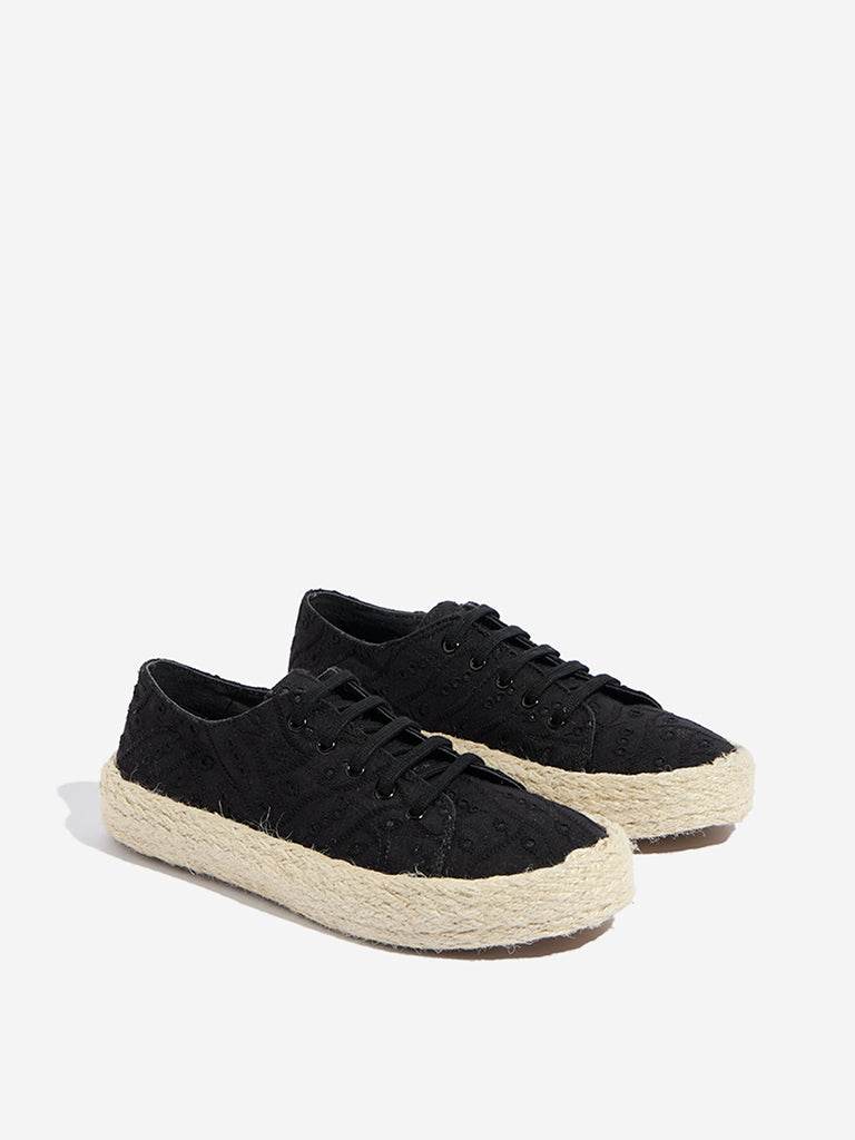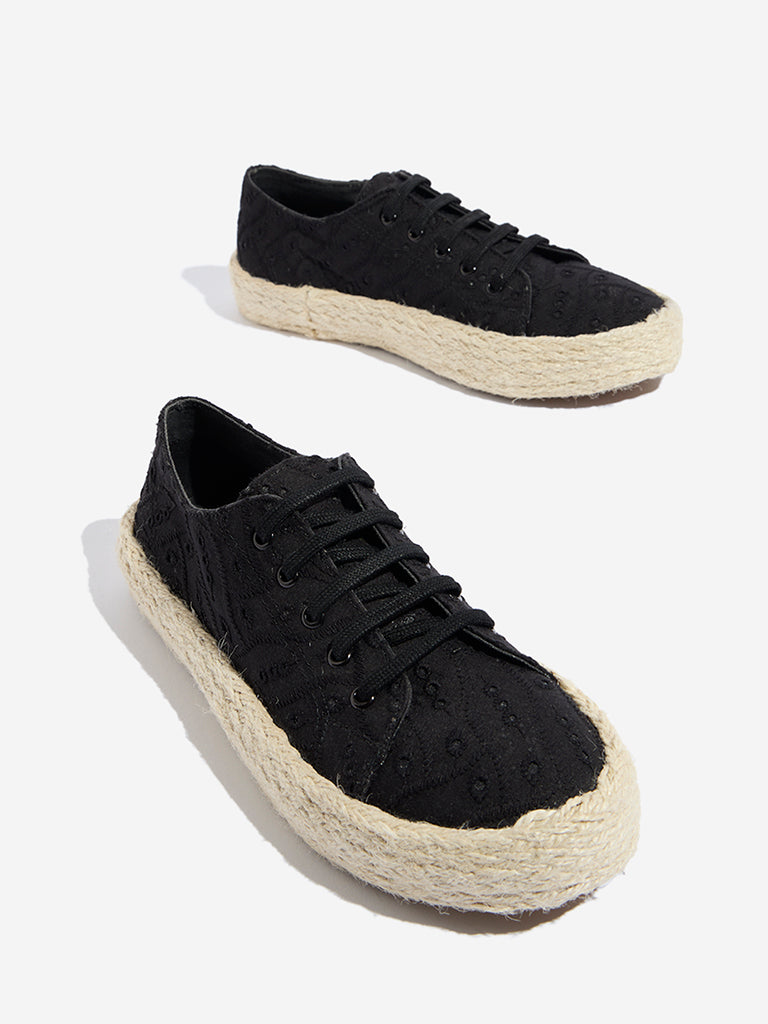 LUNA BLU Black Schiffli Detailed Lace-Up Sneakers