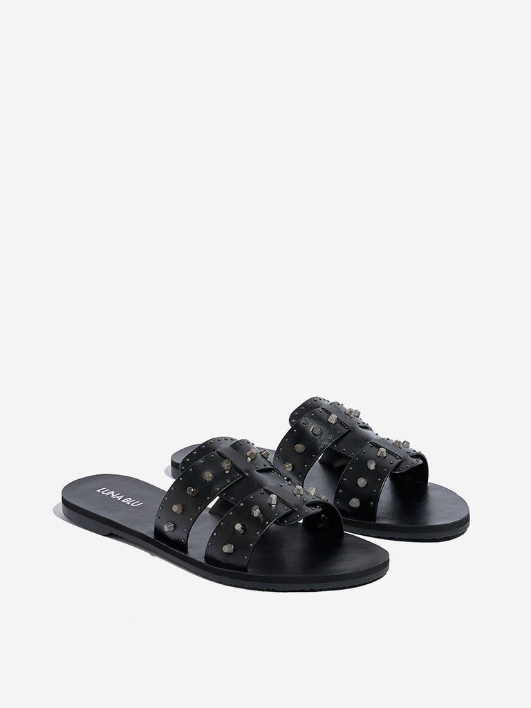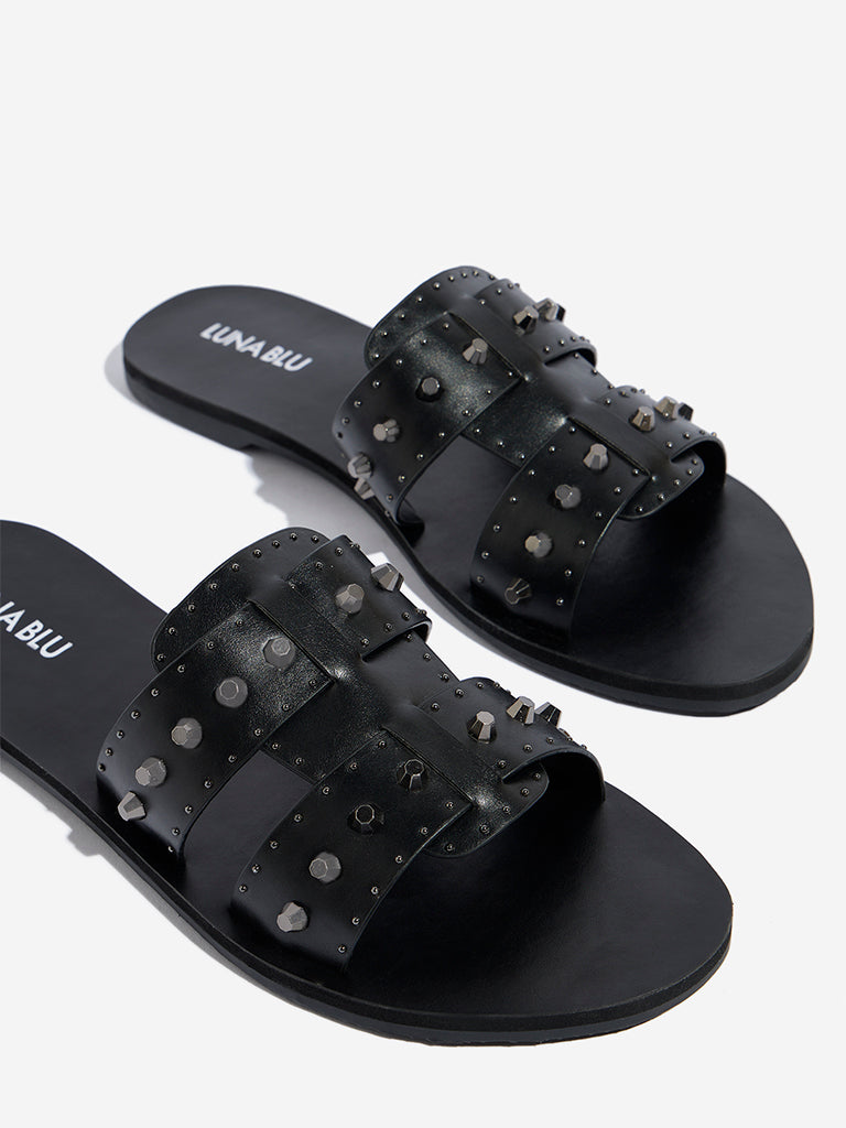 Be the first to review “LUNA BLU Black Stud-Detailed Slides” Cancel reply