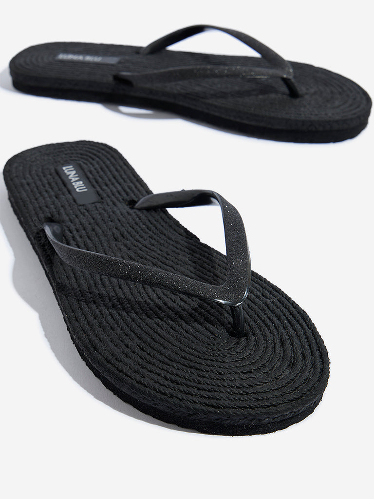 These black flip-flops from Luna Blu feature a textured insole for added comfort. paired with a Y-thong strap for a secure and effortless fit. Designed for everyday ease. they are finished with a textured. flexible outsole for enhanced grip and durability.