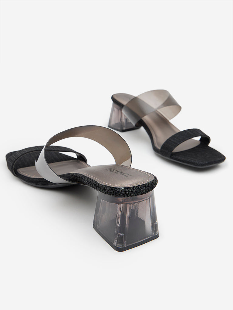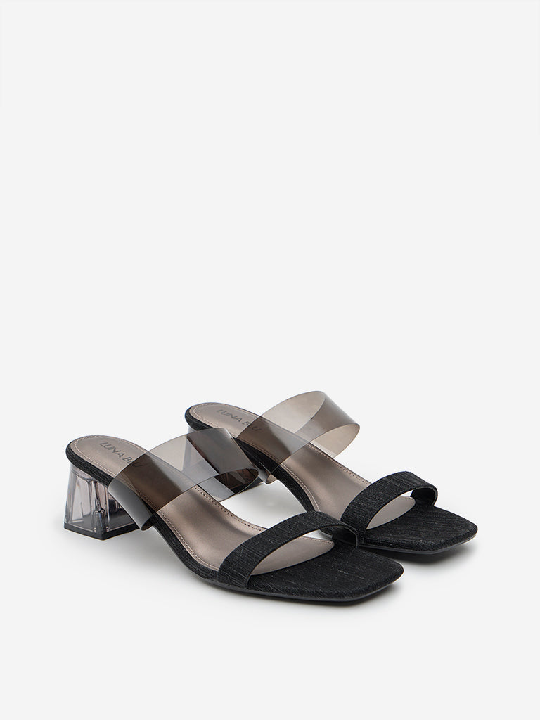 These black sandals from Luna Blu are fashioned with vinyl straps and shimmer detailing on the upper. Built from durable materials. they come fitted with a cushioned footbed and block heels.