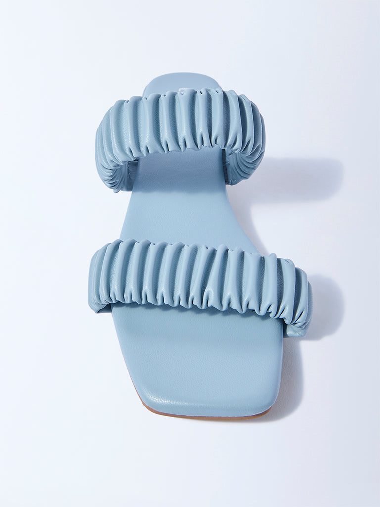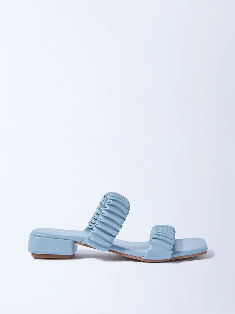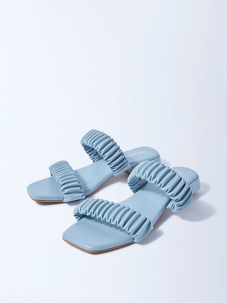 LUNA BLU Blue Ruched Slip-On Sandals