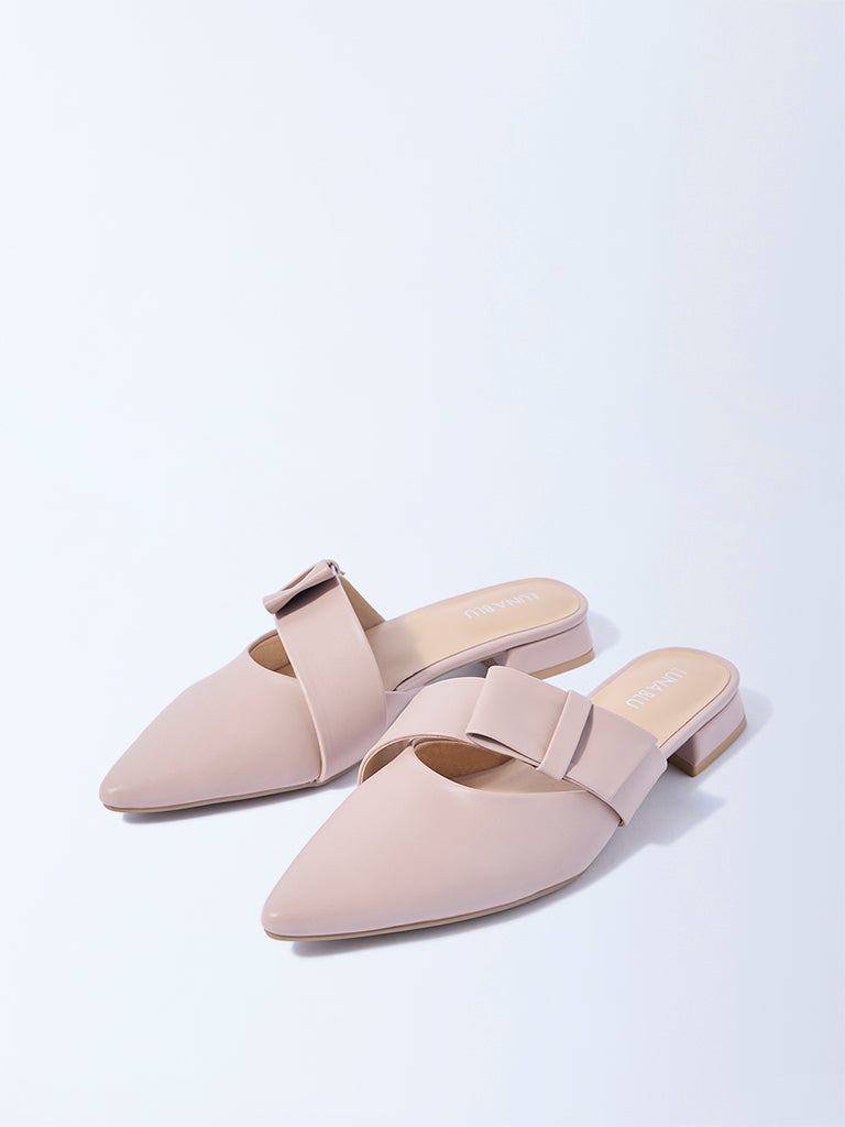 Softly feminine yet effortlessly modern. these blush pink mules from Luna Blu are the pair you’ll reach for on repeat. The pointed toe and wide strap finished with a chic bow detail bring understated elegance. while the low block heel offers just the right lift for all-day wear. A padded insole adds comfort. and the textured outsole ensures every step feels as steady as it is stylish.