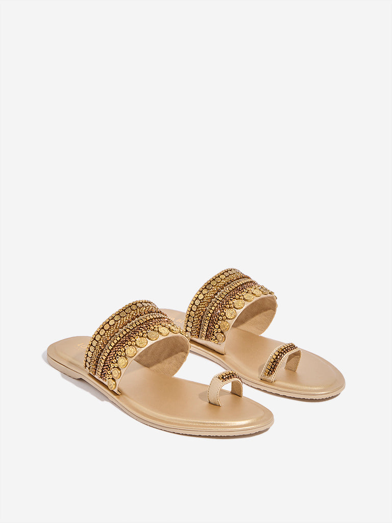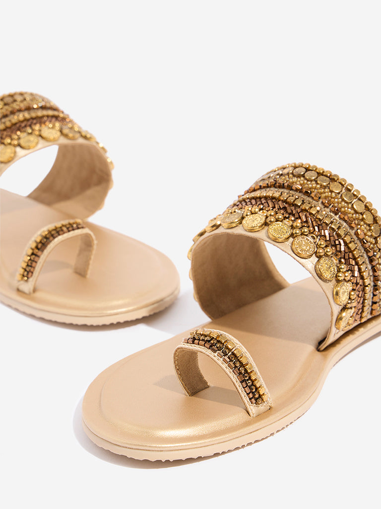 LUNA BLU Bronze Embellished Kolhapuri Sandals