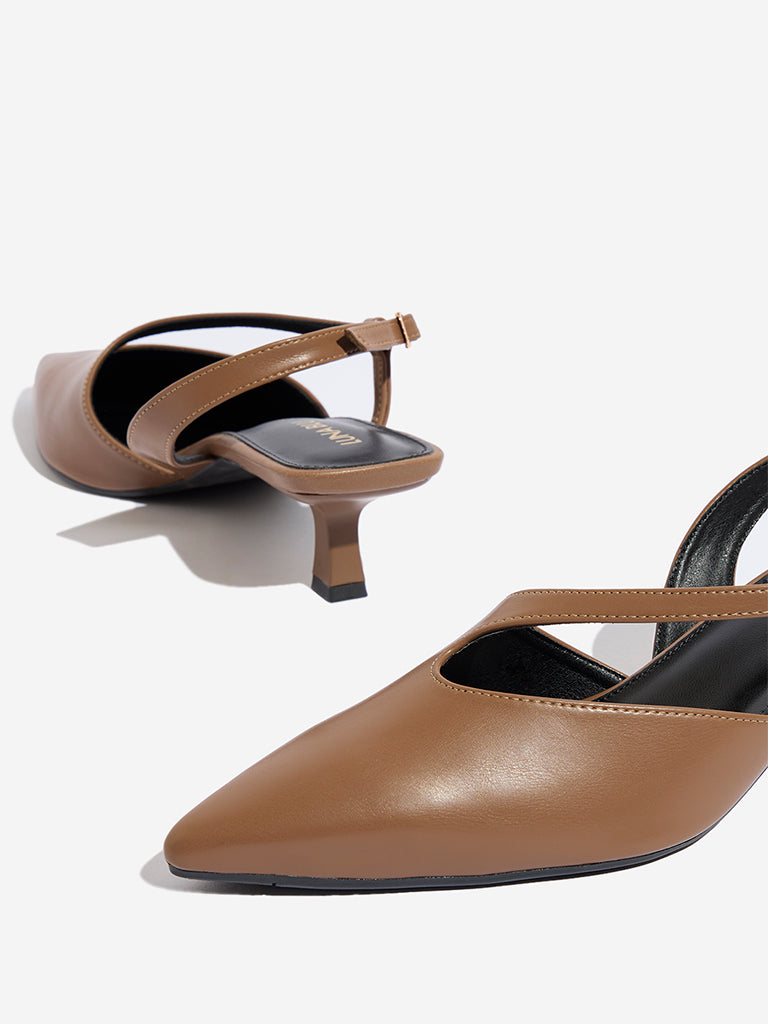 LUNA BLU Brown Asymmetrical Sling-Designed Mules