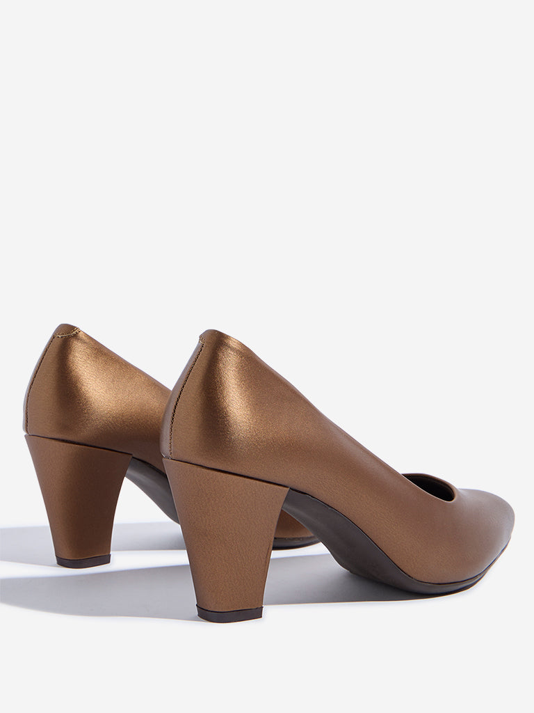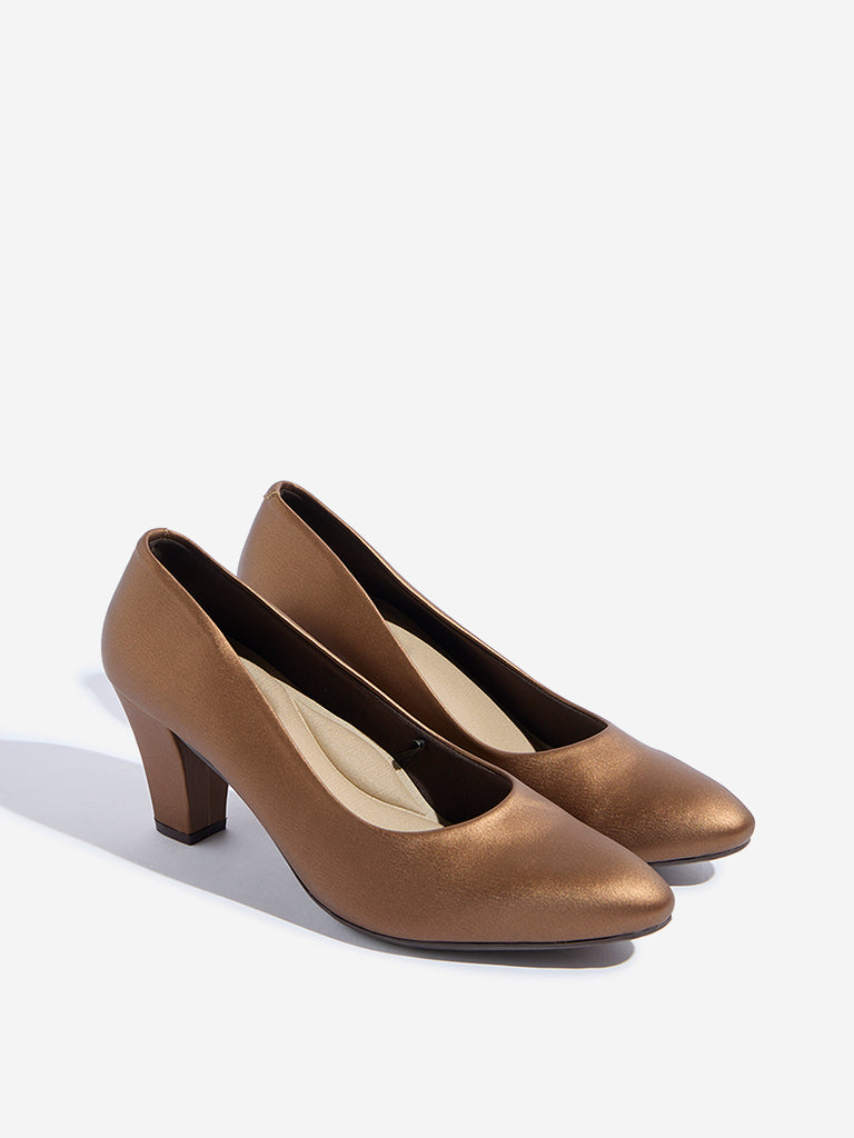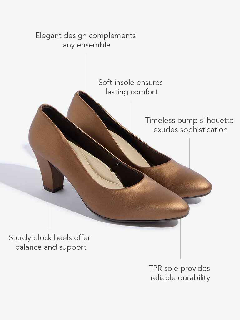 Give your footwear a stylish upgrade with these brown shoes from Luna Blu. Featuring a faux leather finish for added style. these block-heels come designed with cushioned interiors for added comfort.