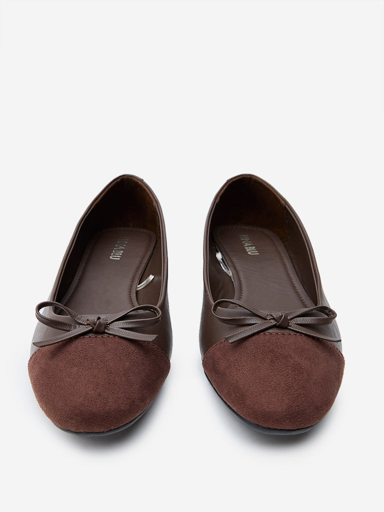 LUNA BLU Brown Bow-Design Suede Ballerina