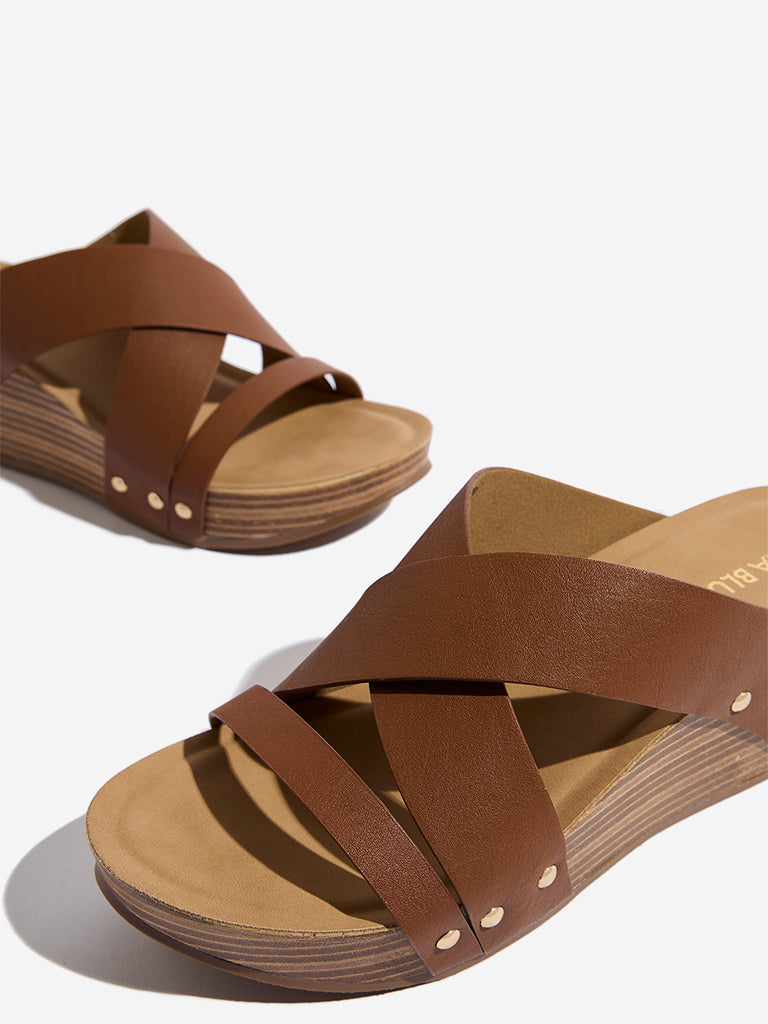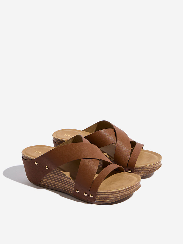 LUNA BLU Brown Criss-Cross Wedge-Heel Sandals