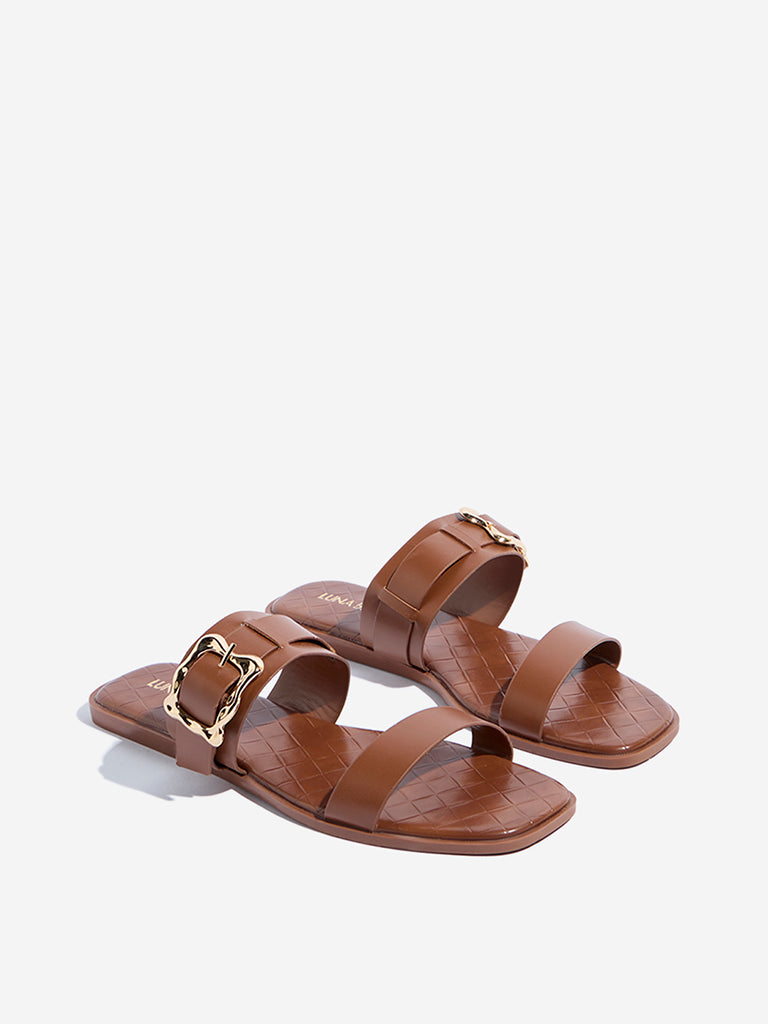 LUNA BLU Brown Dual-Strap Sandals