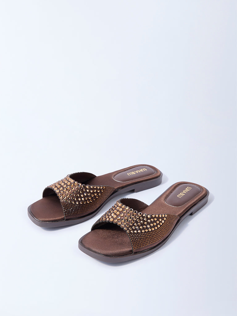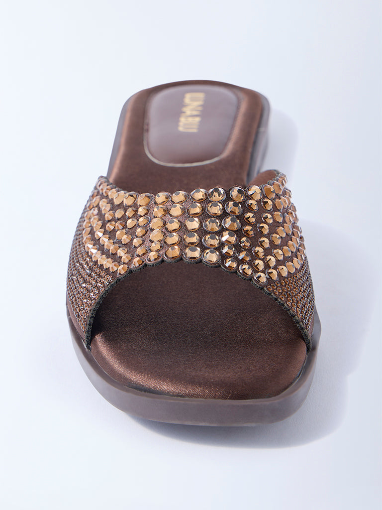 Be the first to review “LUNA BLU Brown Embellished Slides” Cancel reply