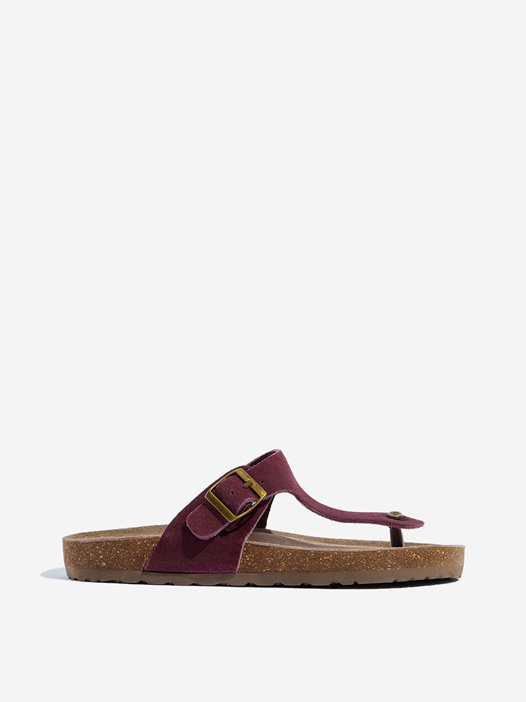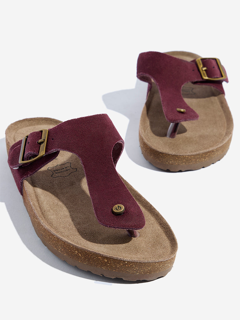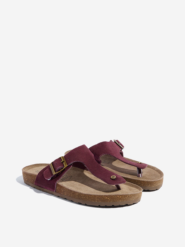 Be the first to review “LUNA BLU Burgundy T-Strap Suede Comfort Sandals”