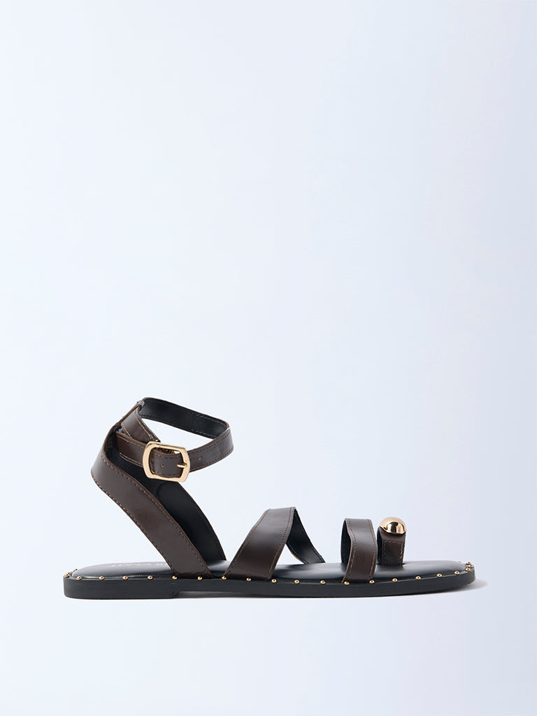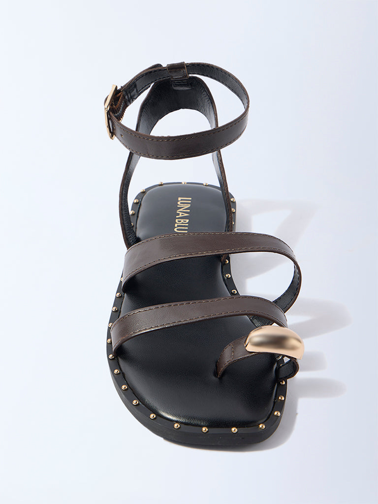 LUNA BLU Dark Brown Toe-Ring Gladiator Sandals