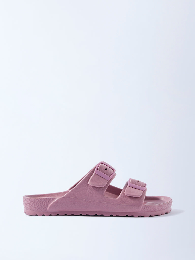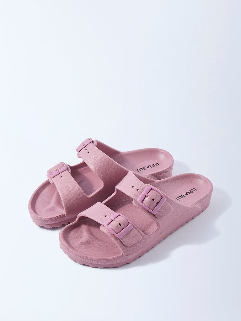 Designed for days that call for ease. these dull pink sandals from Luna Blu balance comfort and casual style. The twin buckle straps allow an adjustable fit. while the contoured footbed cushions each step. Lightweight and practical. the pair rests on textured soles for steady grip and effortless movement.