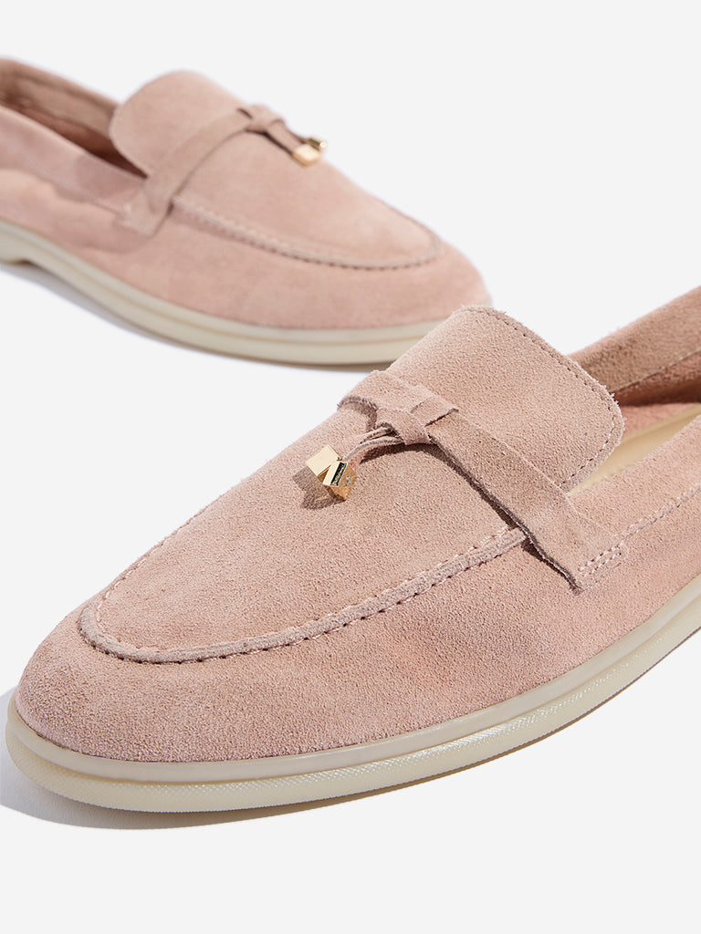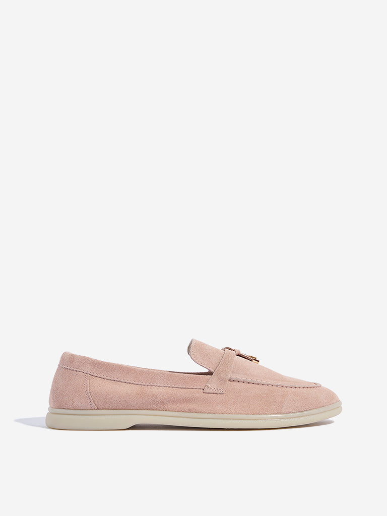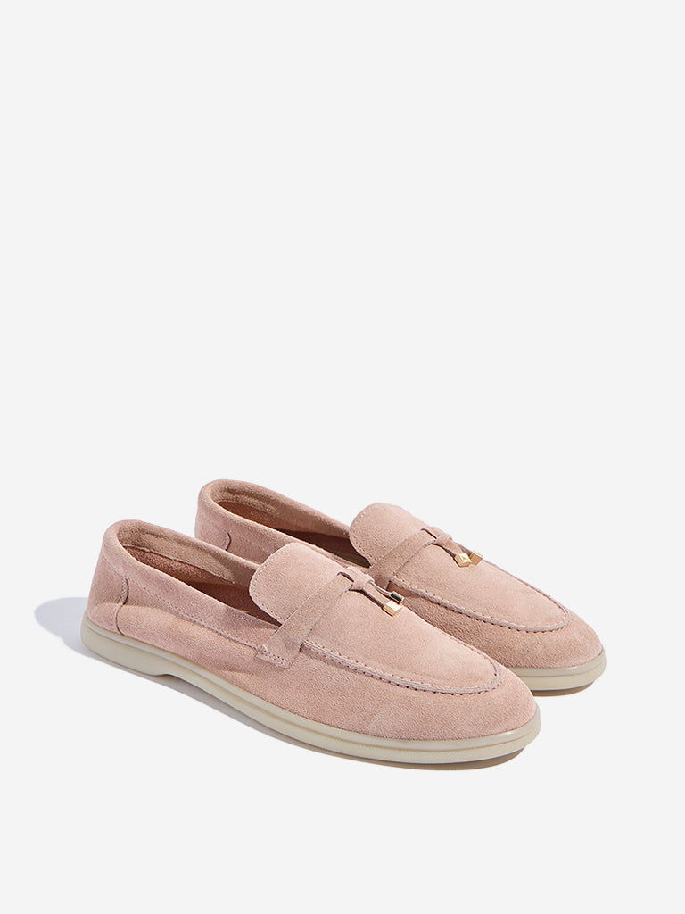 Upgrade your ensemble with these suede penny loafers from Luna Blu. The dusty pink colour and plush suede texture give a fresh twist to the classic penny loafer design. Ideal for making a bold statement. these loafers effortlessly blend comfort with a pop of colour. adding a stylish flair to any outfit.