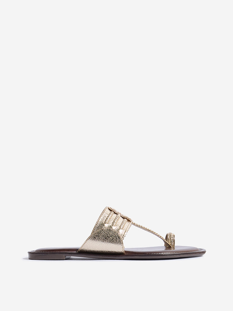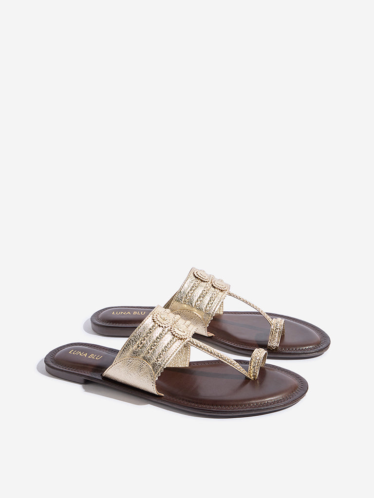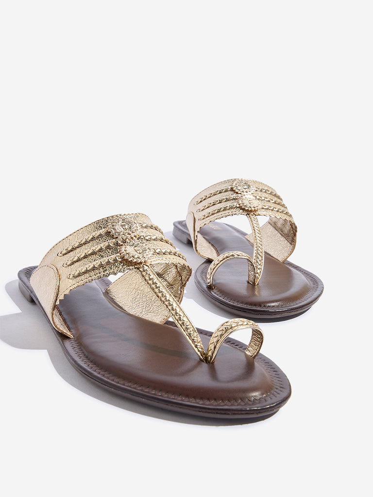 LUNA BLU Gold Braided Kolhapuri Sandals