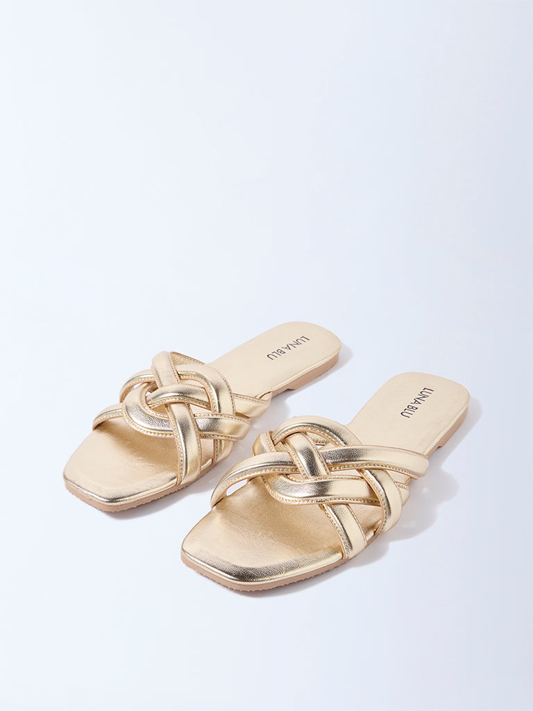 LUNA BLU Gold Criss-Cross Detailed Slides