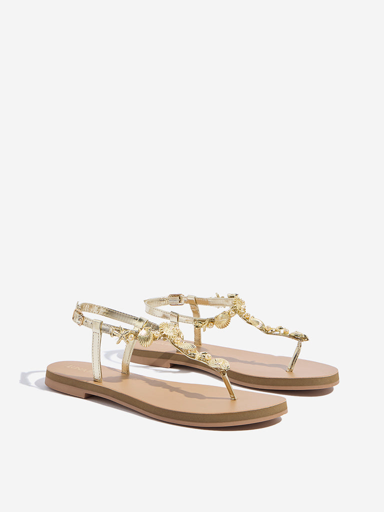 LUNA BLU Gold Shell Detailed Thong-Strap Sandals