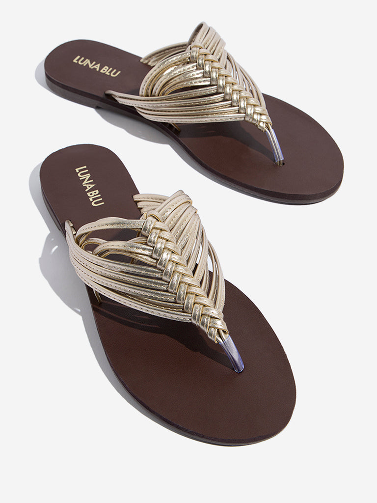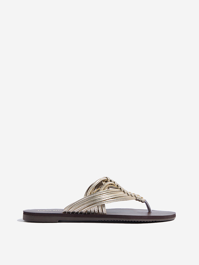 LUNA BLU Gold Woven Thong-Strap Sandals