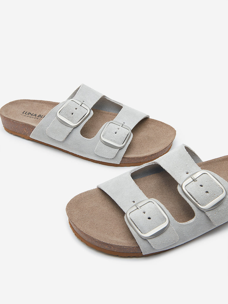 LUNA BLU Grey Dual-Strap Comfort Sandals