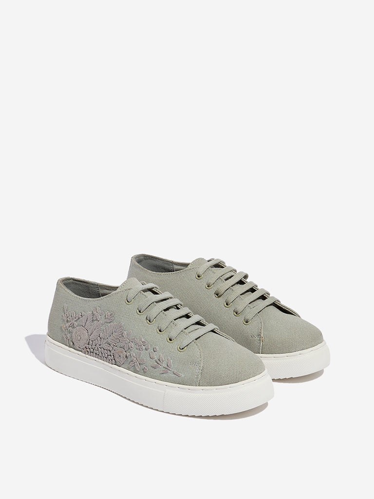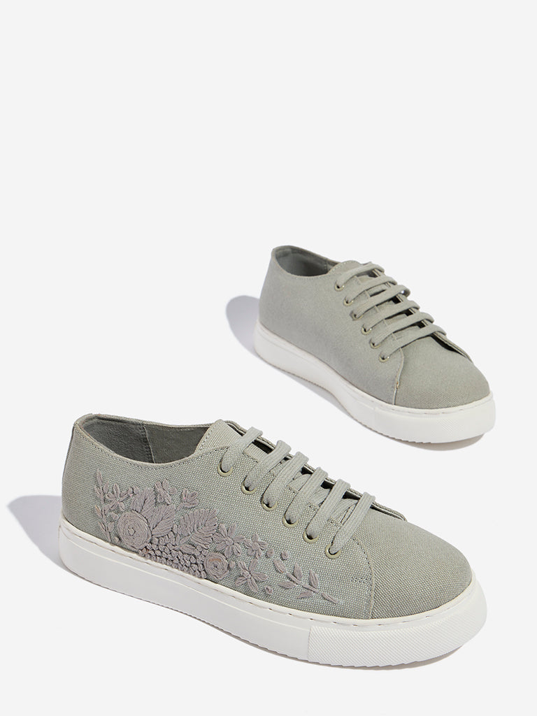LUNA BLU Grey Floral Embroidered Lace-Up Sneakers