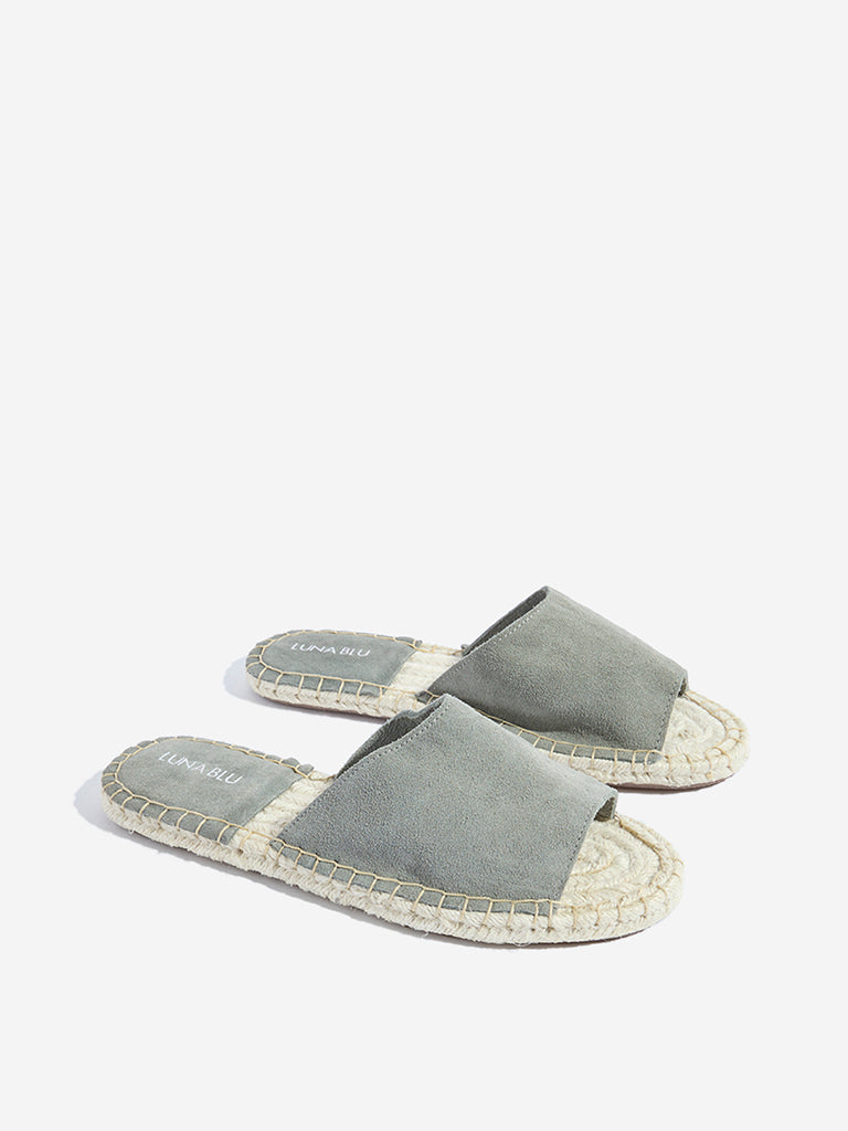 LUNA BLU Grey Suede Espadrille Slides