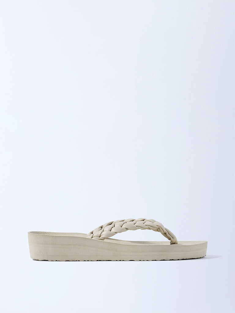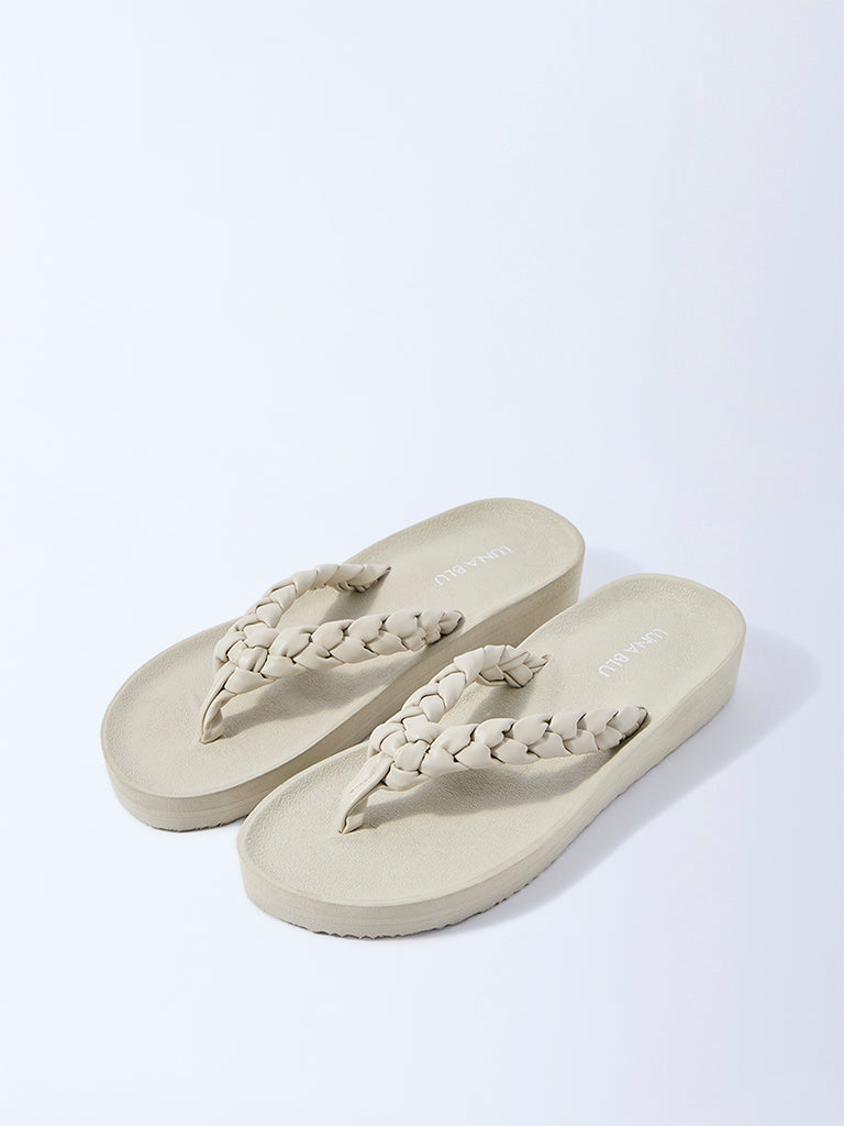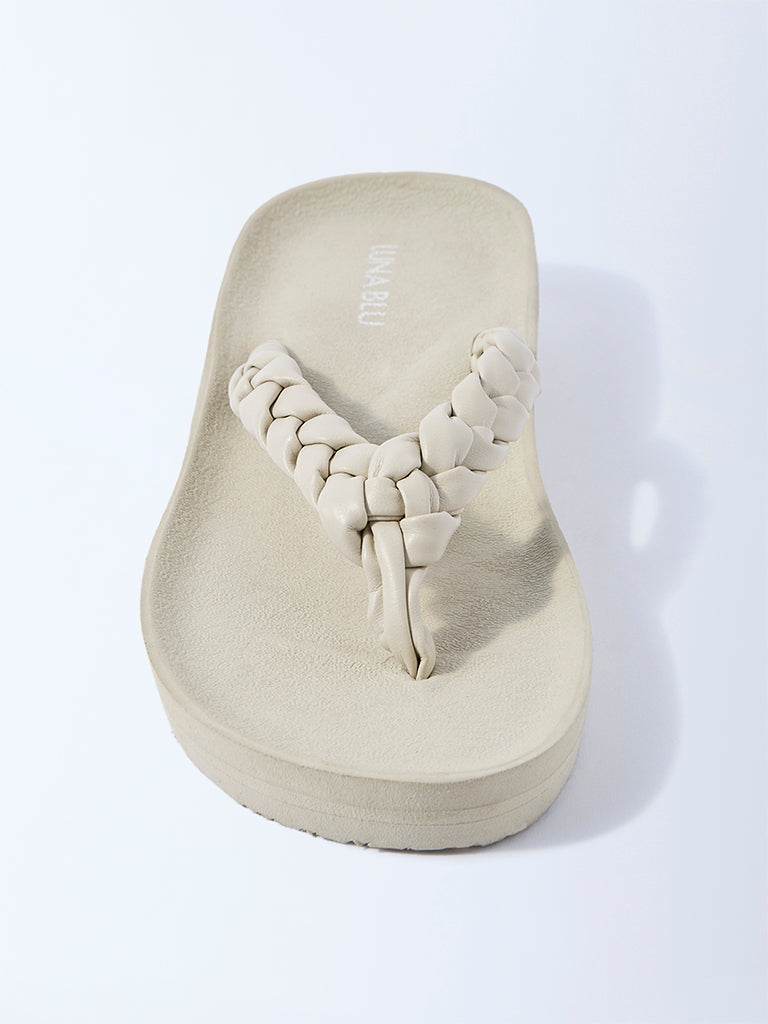 Ease into laid-back style with these ivory flip-flops from Luna Blu. Defined by braided straps that lend a textured touch. they rest on cushioned footbeds for lasting comfort. The platform soles with textured outsoles provide added height and steady grip. making them perfect for relaxed. everyday wear.